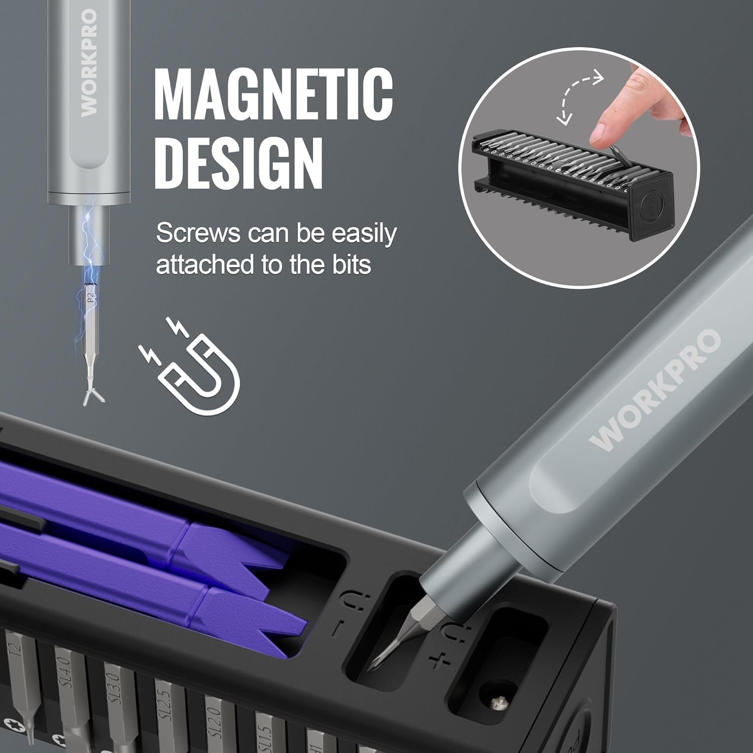 WORKPRO 38 in 1 Electric Screwdriver, 3.7V Electric Precision Screwdriver with Magnetizer and S2 Steel Bits, Max 0.3N.m, Rechargeable Mini Electric Screw Driver for Electronics Phone Camera Laptop
