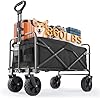 Sweetcrispy Collapsible Foldable Wagon Cart, Large Capacity Garden Cart with Wheels, Heavy Duty Utility Grocery Wagon with Drink Holders for Shopping Sports Camping, Large Black