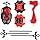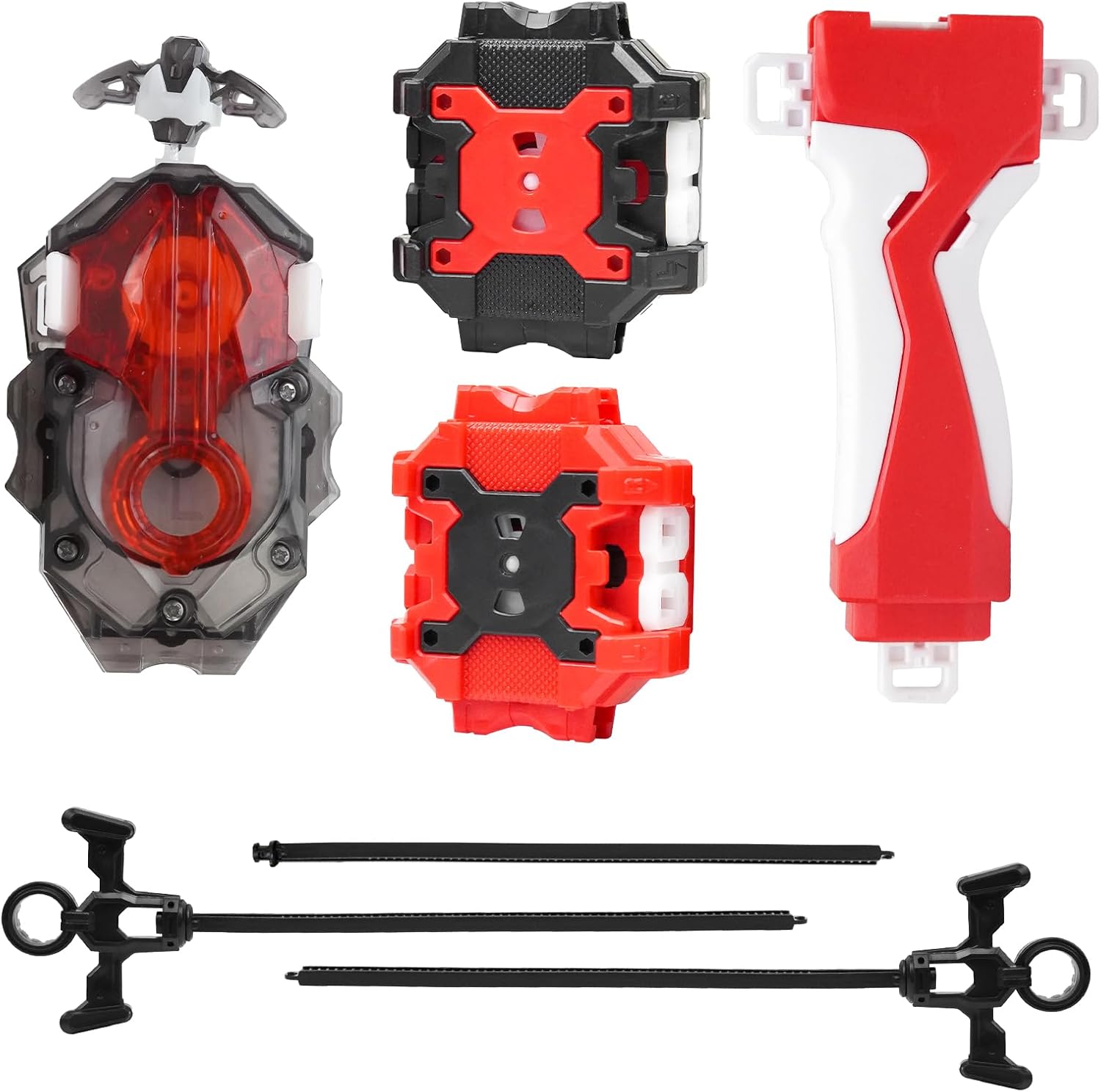 Spinning Tops Launcher Set, Red and Black, with Grip Handle and Accessories