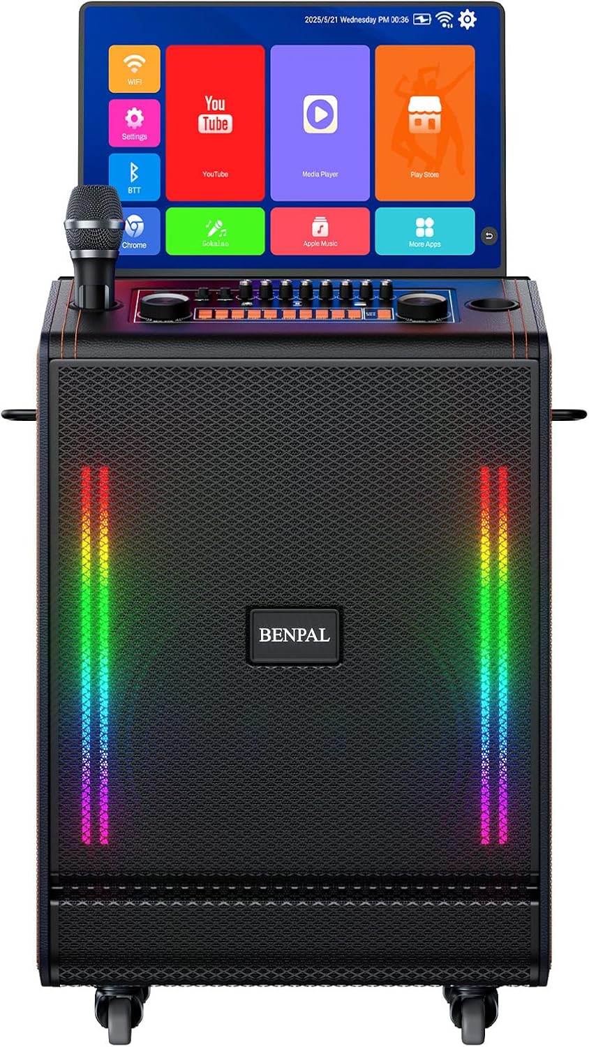 Ultimate Karaoke Machine With Screen: This Benpal Karaoke Machine built-in big HD screen 17.3 inch, 1920x1080 HD resolution, Dynamic lyrics display. No matter home party or birthday gathering, songs singing, this karaoke machine for adults bring you Immersive Cinema level experience, say goodbye for the limited of traditional small karaoke machine. Immersive large-screen experience, the first choice for home KTV Upgrade.