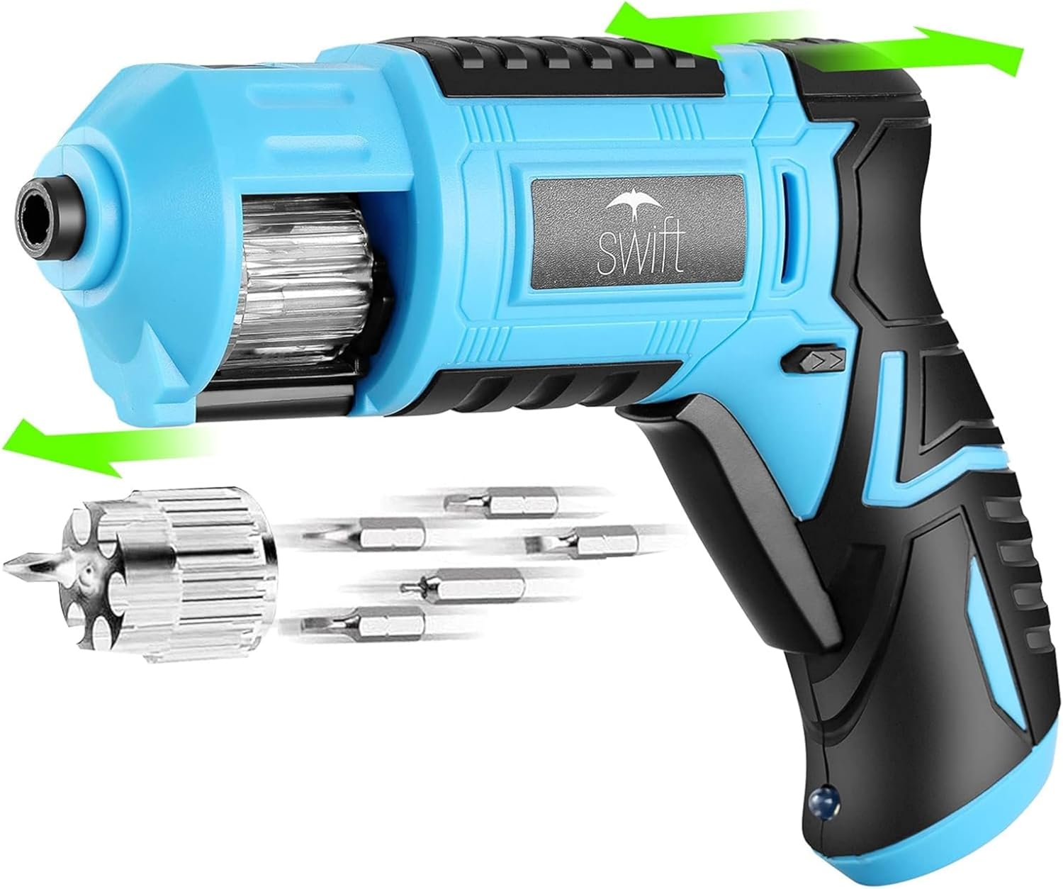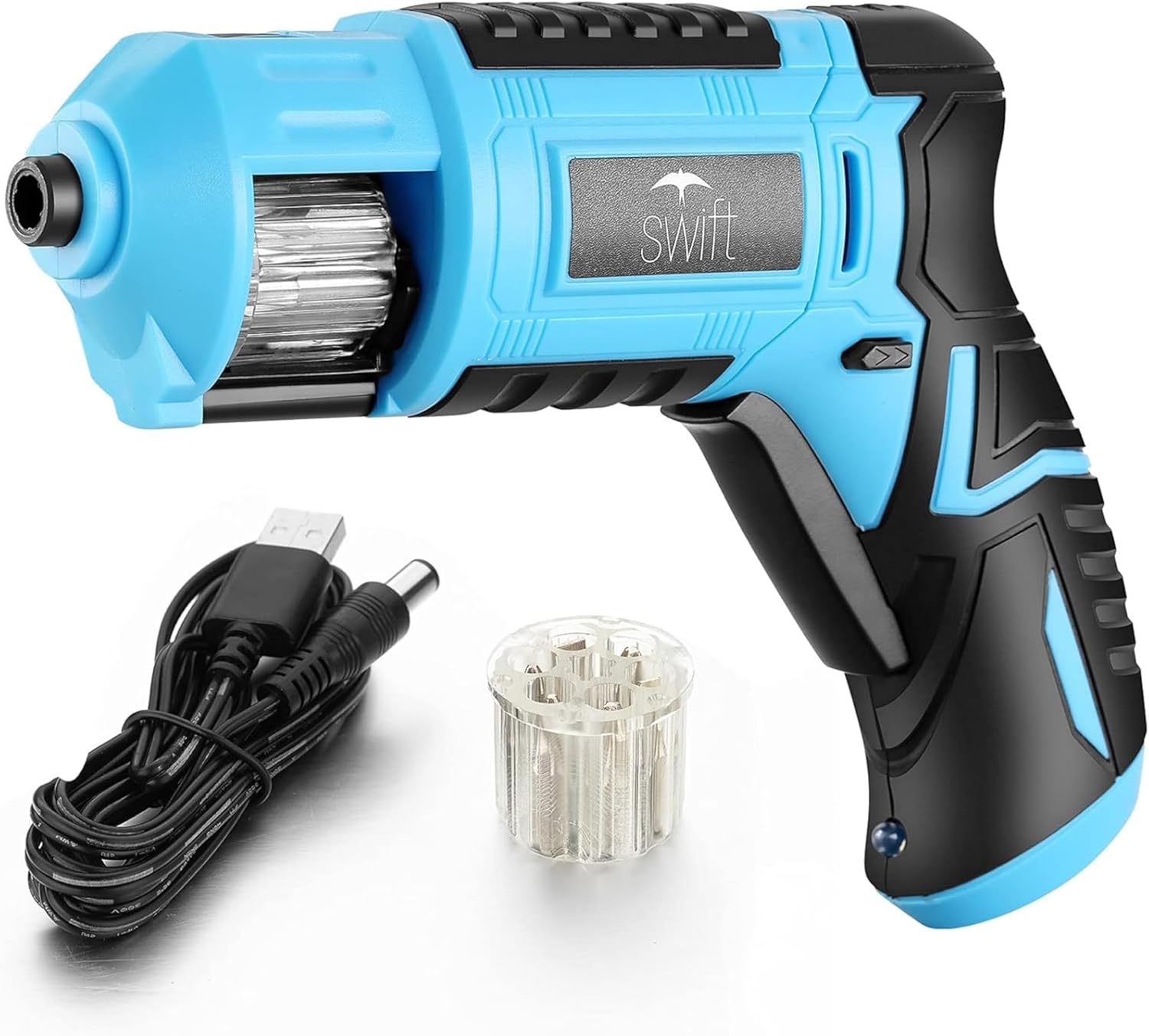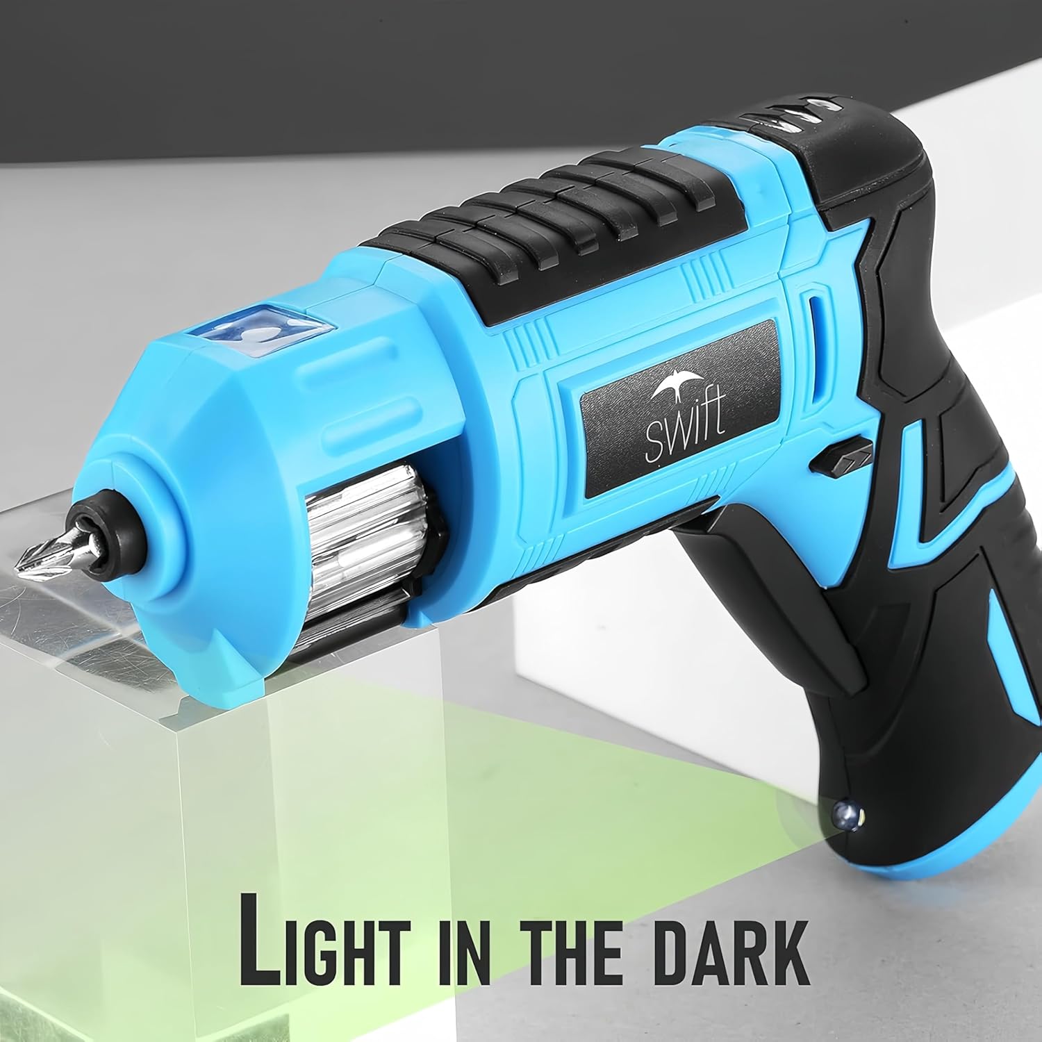 Swift 3.6V/4V-Max Cordless Screwdriver – 4.5N·m Max Torque, 1300mAh Rechargeable Battery, 12-Piece Bit Set, LED Light & USB Charging – Compact Electric Screwdriver for Home & DIY