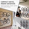【Upgraded 150° Rotating Design】 Featuring a bearing system, the rotating design lets you conveniently store your bike at center, left, or right angled positions. This wall-mounted rotating bike rack is an ideal storage solution for tight spaces around vehicles and inside apartments. The rotating system allows you to store the bike flush against the wall. Simply hook the front wheel in place, rest the rear wheel on the stabilizer, and rotate the bike wall mount to your desired angle.