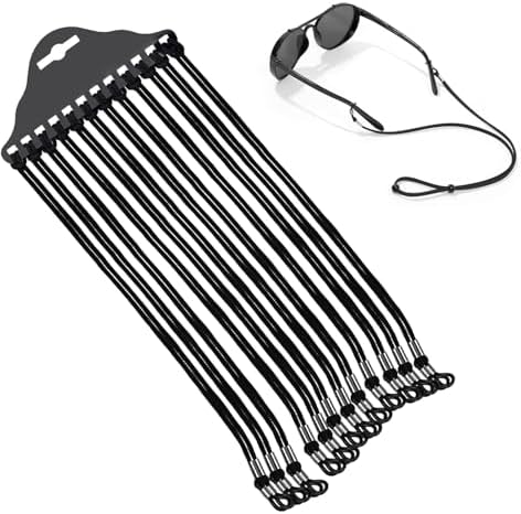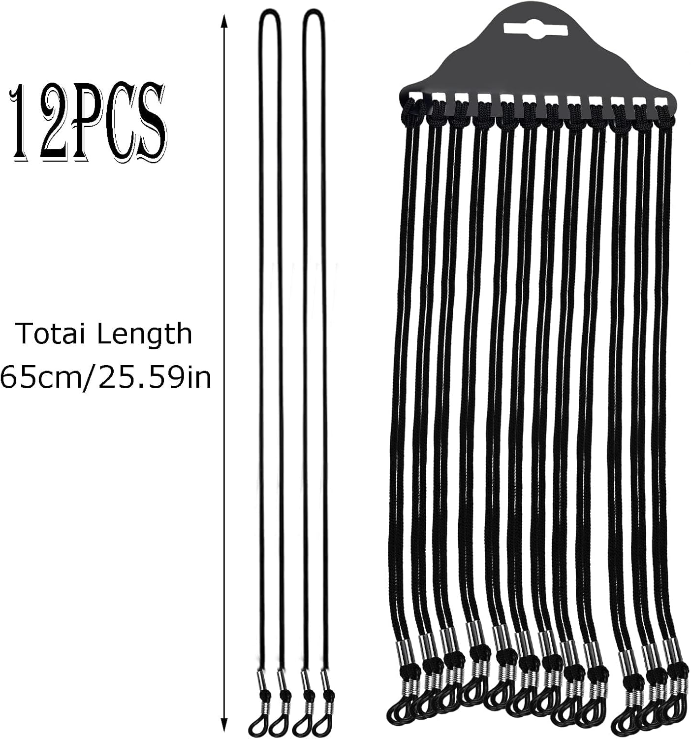 12-Pack Adjustable Glasses Straps – Black Nylon Eyewear Retainers with Carabiner Ends for Sunglasses, Reading Glasses, Sports & Outdoor Use – Unisex Eyeglass Chains