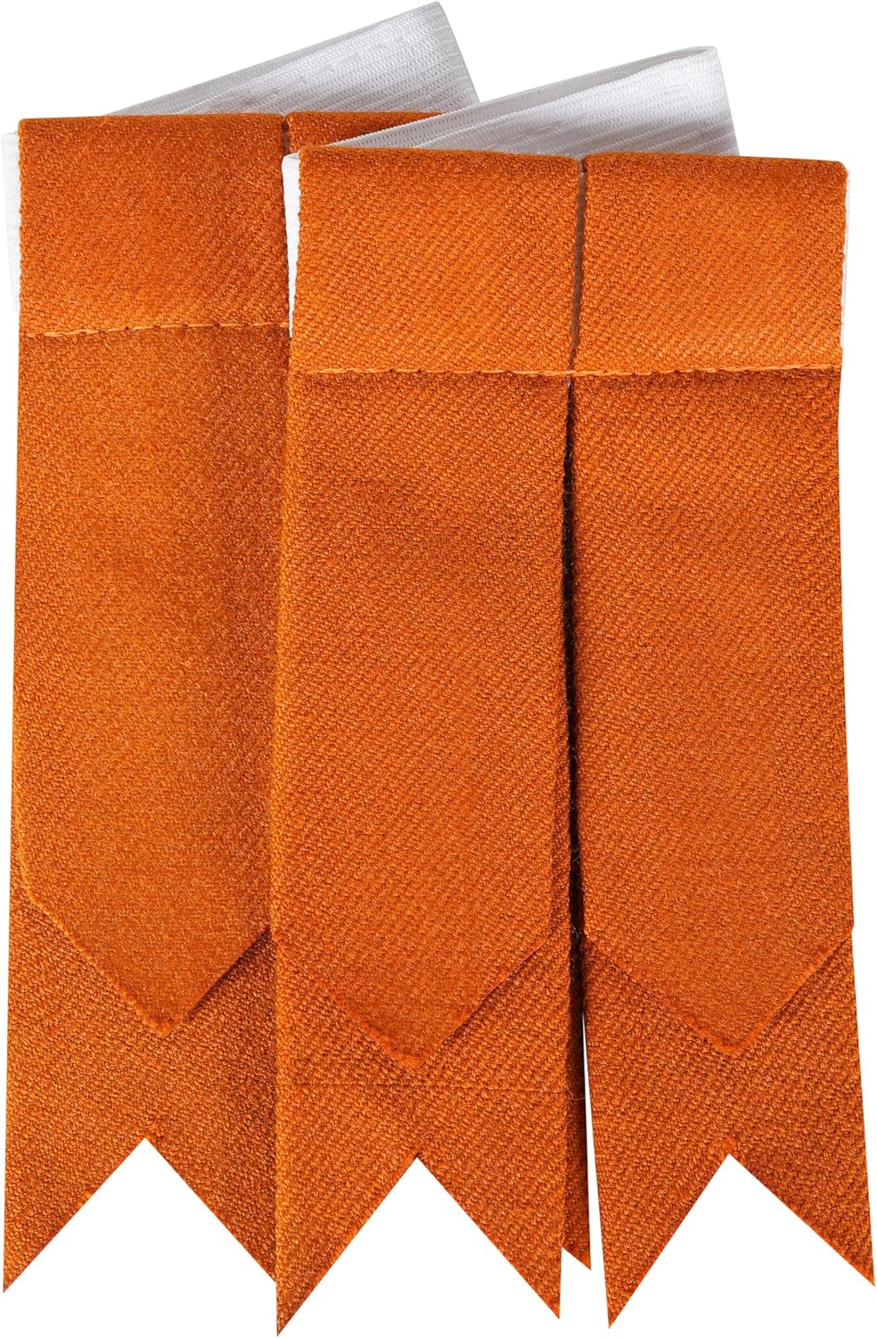 Elevate your traditional Scottish attire with our Brand New Scottish Kilt Flashes, expertly crafted to provide both style and durability. These kilt flashes are made from high-quality wool, ensuring they stand the test of time while offering a comfortable and secure fit. The flashes are mounted on a 1" (3cm) wide white elastic band, complete with heavy buckle adjusters, allowing them to fit all sizes with ease. Each flash is designed with traditionally pointed ends, adding an authentic and refined touch to your kilt ensemble. Available in a wide range of colors and tartans, our kilt flashes allow you to perfectly match your outfit and showcase your unique style. Whether you're dressing for a formal event or a casual gathering, these kilt flashes are the ideal accessory to complete your look. Visit the HS Elite Kilt Jacket Inc. today and discover the perfect kilt flashes for your needs. Enhance your kilt outfit with our premium quality, versatile kilt flashes, designed for the modern man who appreciates tradition.