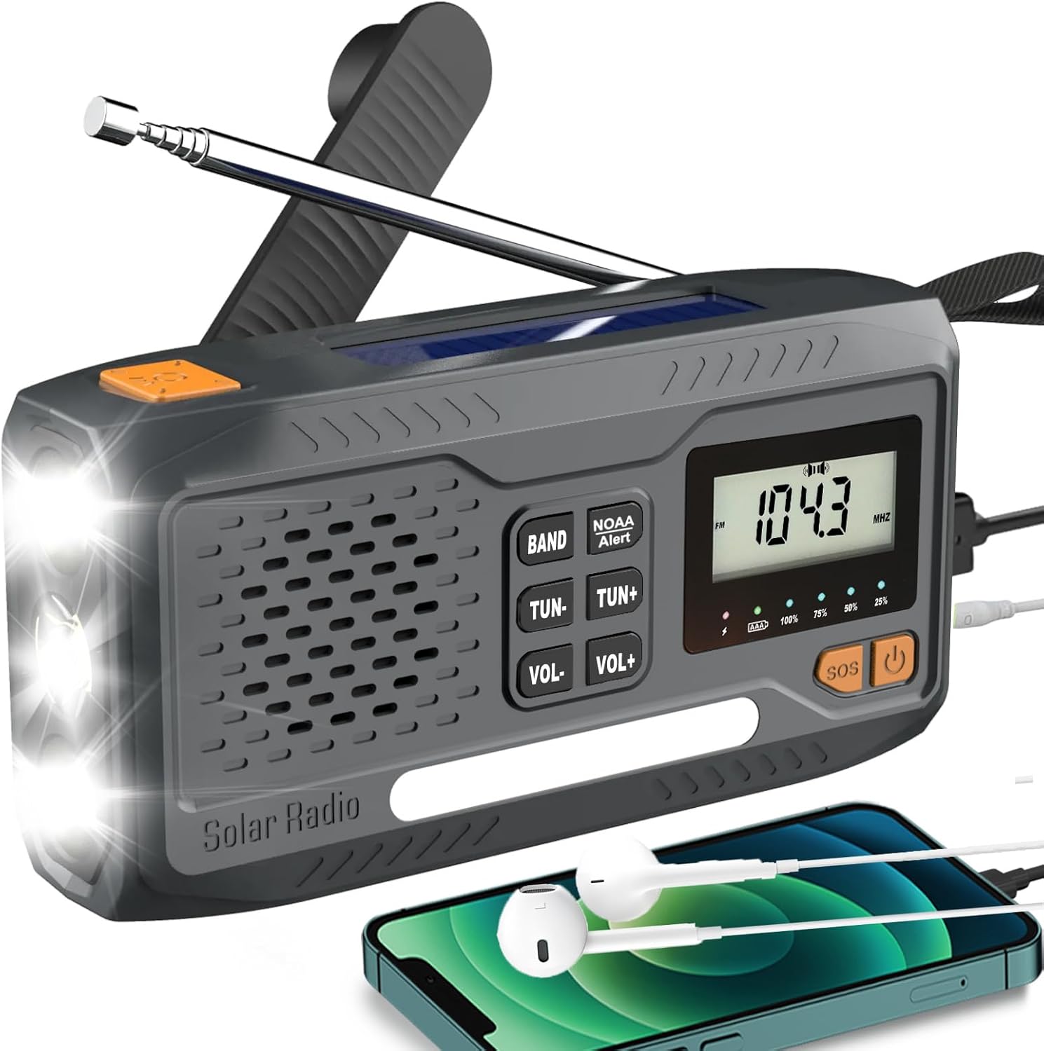 【Best After-Sales Service】Package includes: 1*Emergency Hand Crank Radio Radio, 1*User Manual, 1*USB-C Cable.Over the years, our bettery powered radio have assisted countless U.S. citizens during hurricane, tornado, and blizzard seasons, such as Dorian, Harvey, Irma, and others. Our radios come with a 24-month wa-rranty guarantee. If you're not satisfied with your NOAA emergency weather radio, we provide a quick refund upon request. Our customer service is available 24 hours to support you