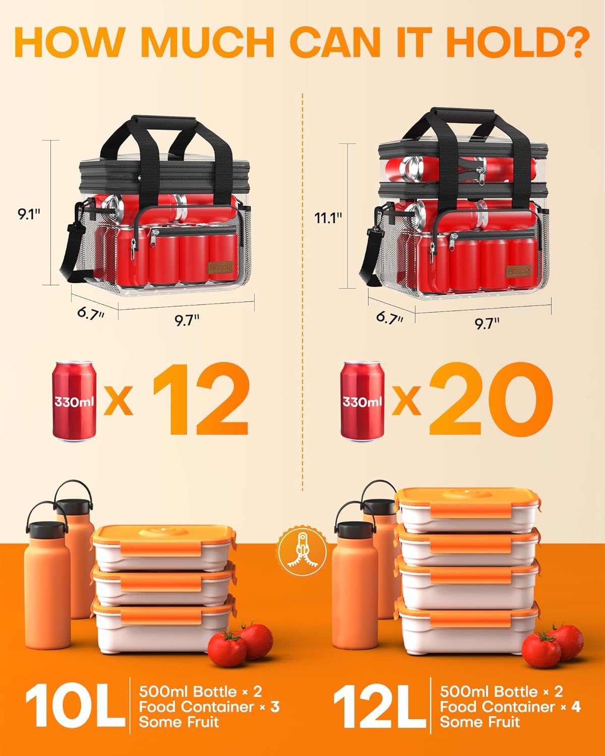 SPACIOUS & ORGANIZED: Stay organized on the go with multiple storage areas. The cooler bag includes two side pockets and two front zipper pockets for keys, phones, cards, snacks, or drinks. Inside the top compartment, a mesh pocket keeps utensils and ice packs separated. The HOTOR lunchbox helps you carry everything you need, perfect for workdays, outdoor activities, or trips.