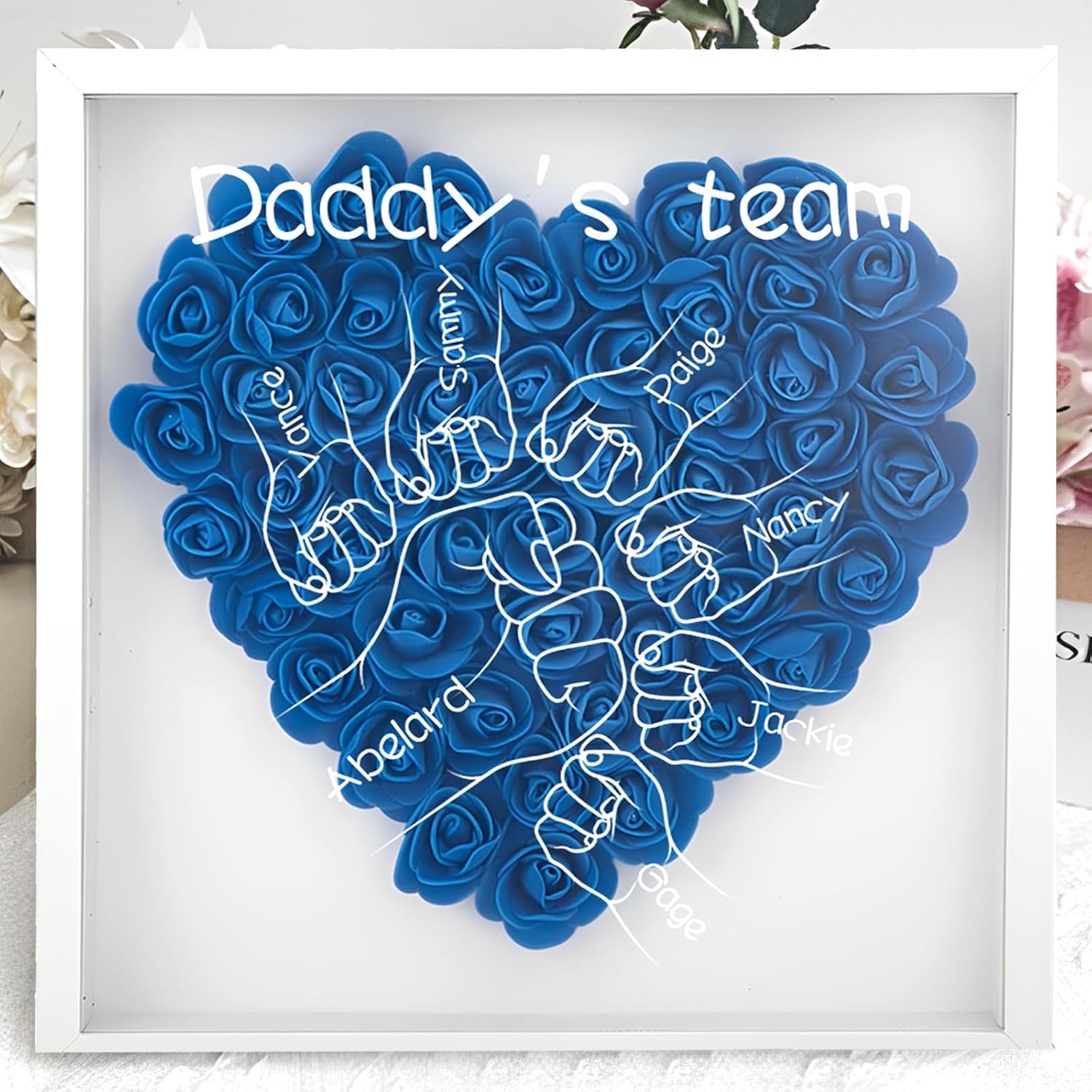 Personalized Daddy's Team Fist Bump Flower Shadow Box,Fist Bump Gift for Dad, for Husband,Custom Shadow Box for Flowers with Kids Name ,Birthday Gift for Dad from Daughter Son Wife