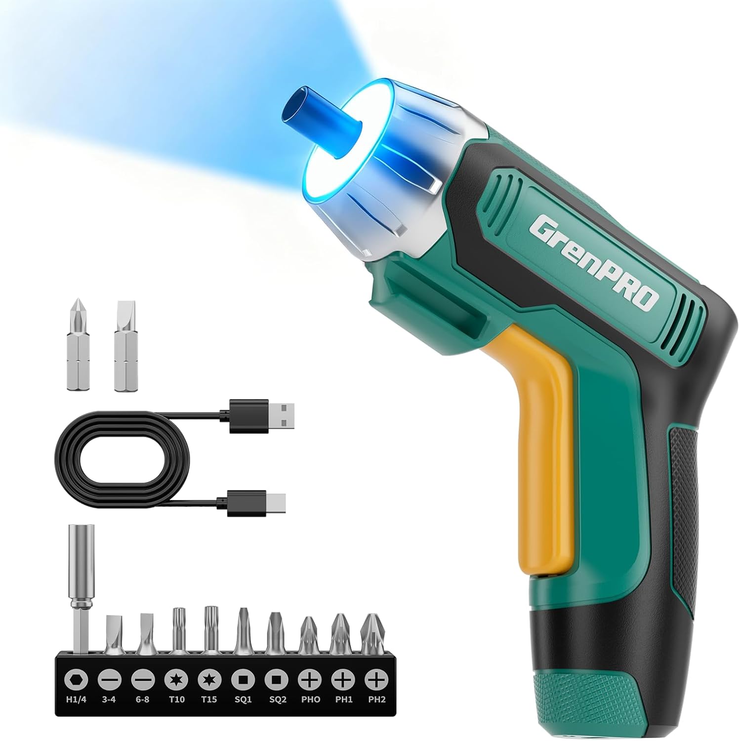 4V Electric Screwdriver Rechargeable, Cordless Screwdriver 9pcs Bit with 1pc Bit Holder, USB Small Power Screwdriver Set with Bits, Green