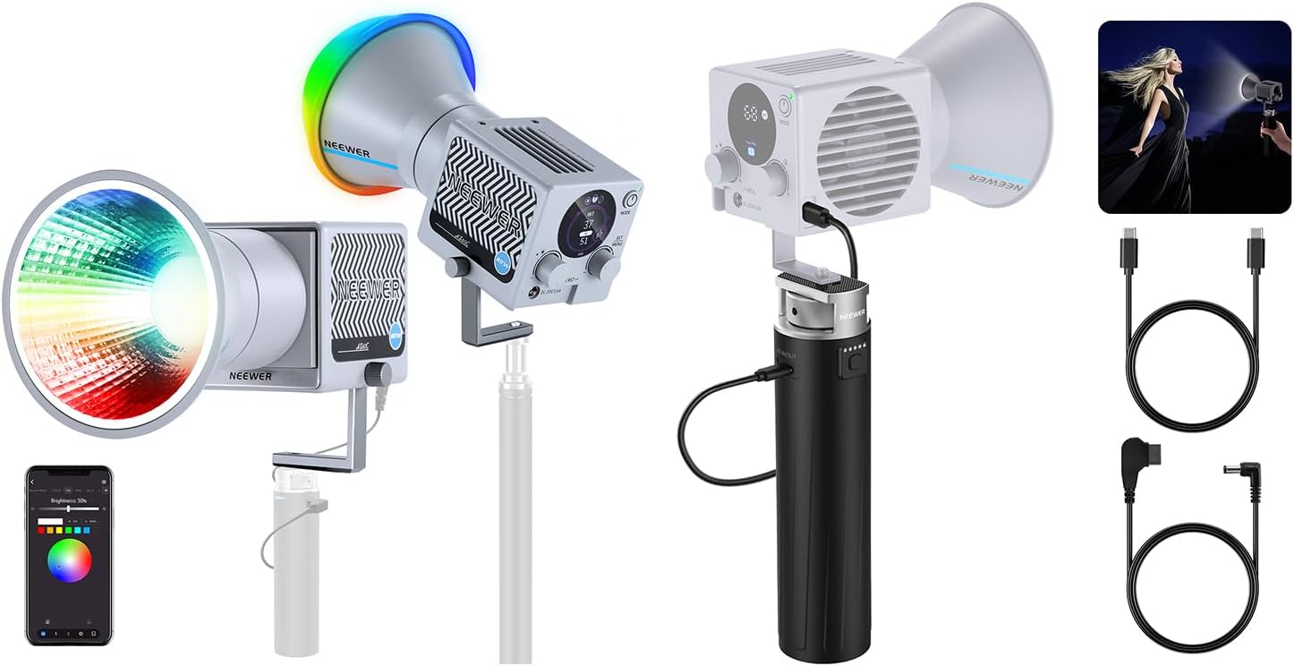 NEEWER 60W Portable RGB LED Video Light Handheld Fill Light, APP/2.4G/Panel Control 18 Scenes 8700Lux/1m 2700-6500K CRI97, Battery Grip Power Supply for MS HB Series COB Video Lights Included