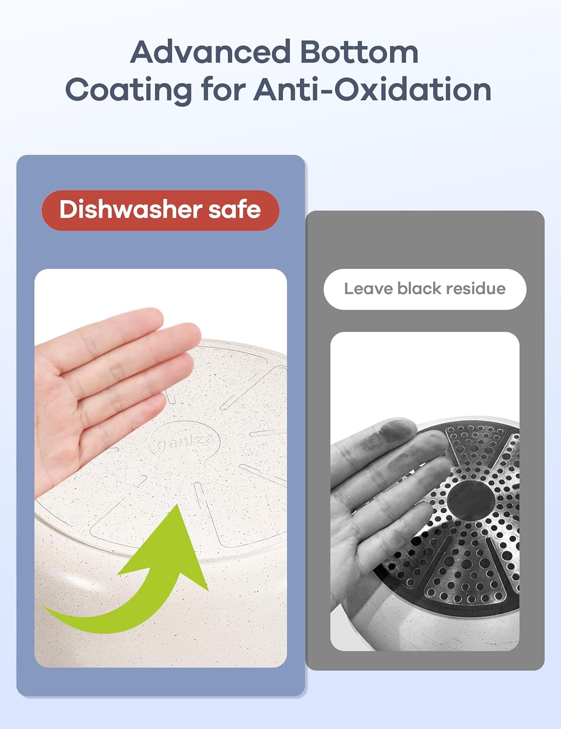 Effortless Cleanup Every Time: Just quick rinse or wipe, no elbow grease needed. Ganiza dishwasher safe pots and pans set also lets you cook, serve, and store with fewer tools, cutting down on dish piles and making cleanup a breeze.