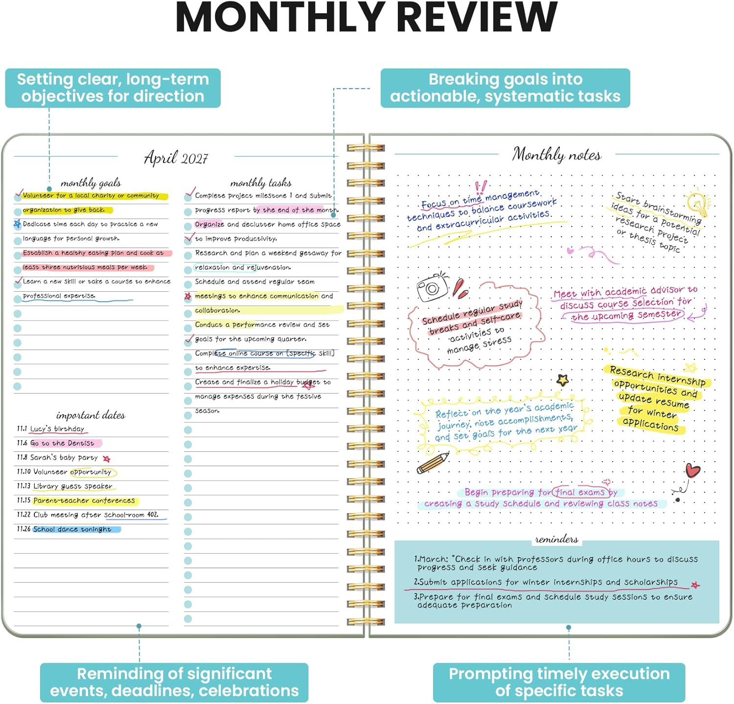 Designed for Versatility: Whether you’re a student, a professional, or a homemaker, this monthly planner is the perfect tool to keep track of academic schedules, work deadlines, and home management. Its structured layout helps improve productivity while maintaining a healthy balance in daily life, offering an effective method for time management and personal development.
