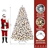 【FLOCKED DESIGN】 With 1170 branch tips, the 7.5 ft artificial hinged flocked tree is leafy and fluffy, creating a full and realistic appearance. Snow flocked leaves on the tree make you feel like you are in the world of snow. You can embrace the joy of Christmas to your heart's content, adding more shiny factors to your living space.