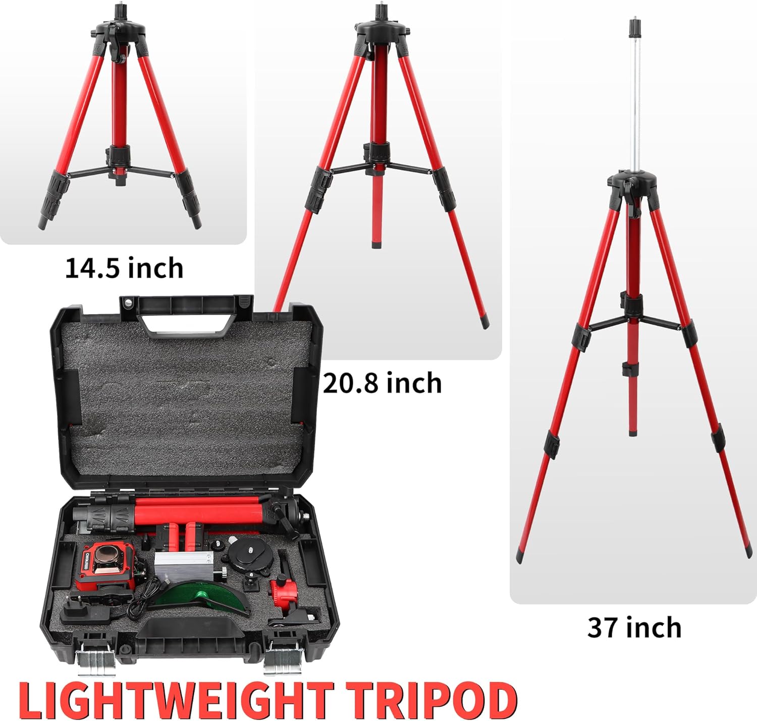 【Versatile Tripod and Magnetic Bracket】 This laser level comes with a tripod that extends from 13“ to 40”. The base is threaded for compatibility with the supplied tripod and 360° magnetic mount
