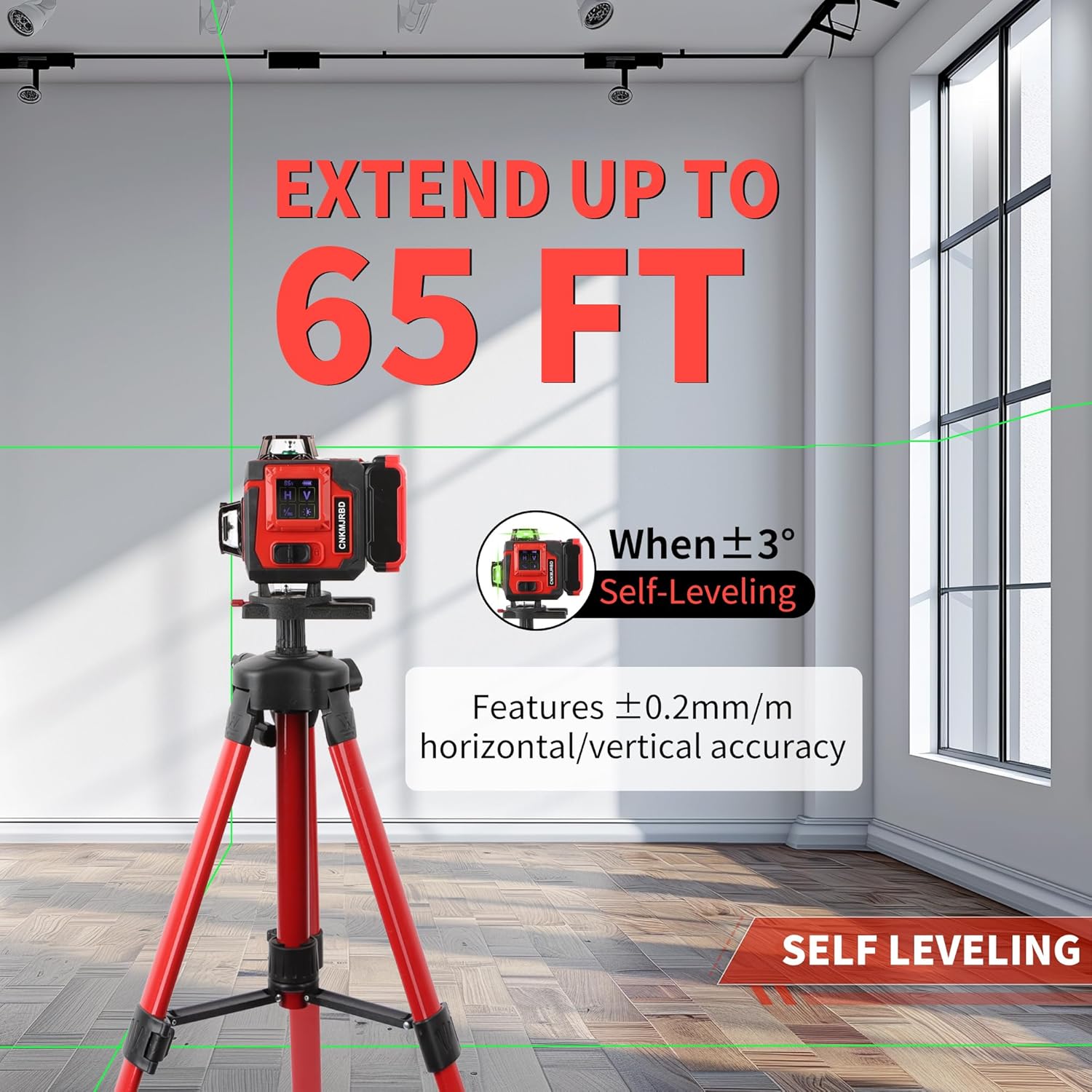【Precision Leveling】: The laser level has a horizontal and vertical accuracy of ±0.2 mm/m, ensuring that measurements are always reliable. The automatic self-leveling system over a ±3° range minimizes setup time and eliminates the need for manual adjustments
