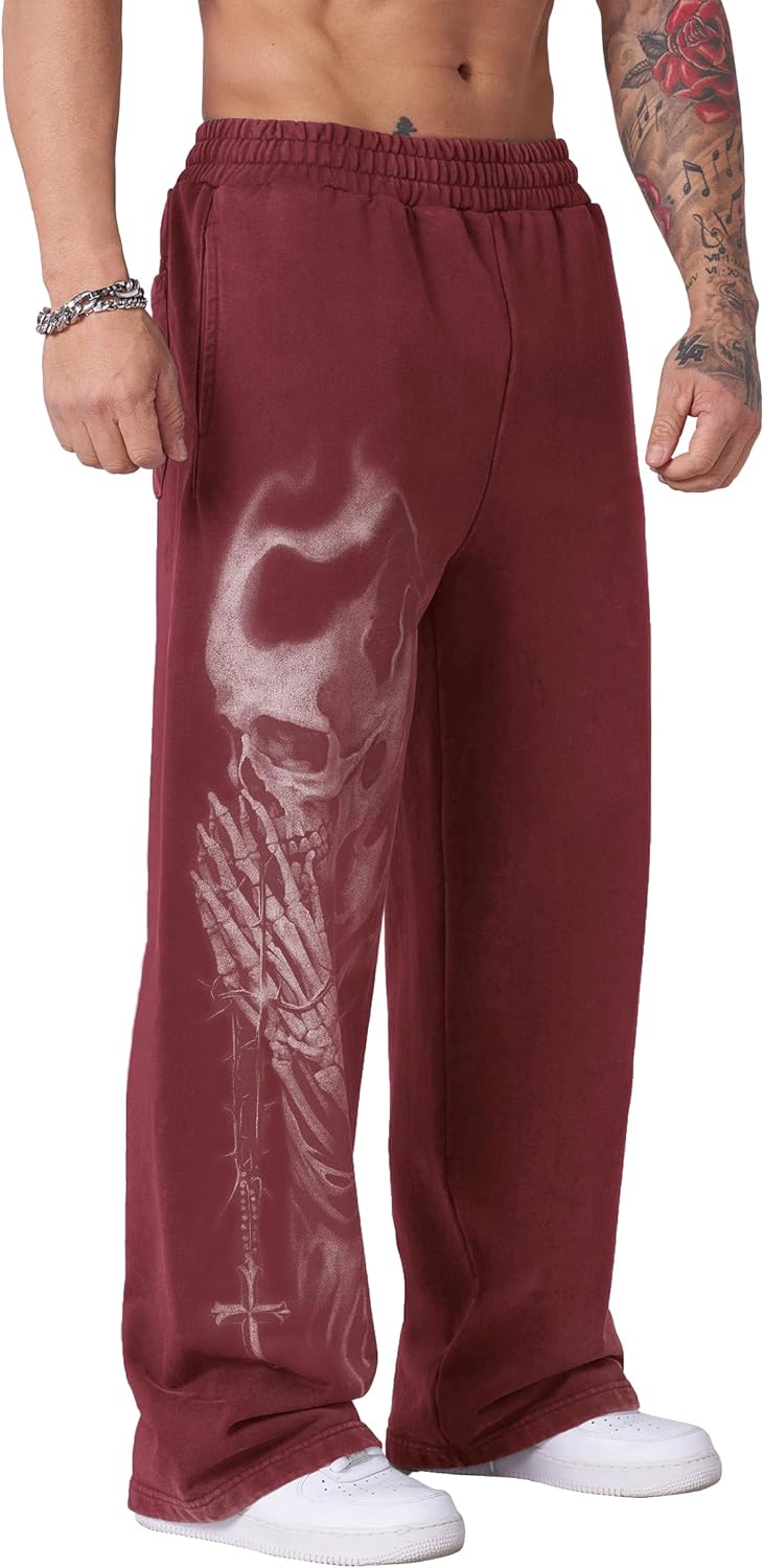 BOOMLEMON Mens Graphic Print Joggers Baggy Casual Workout Pants Bandana Punk Streetwear Sweatpants with Pockets