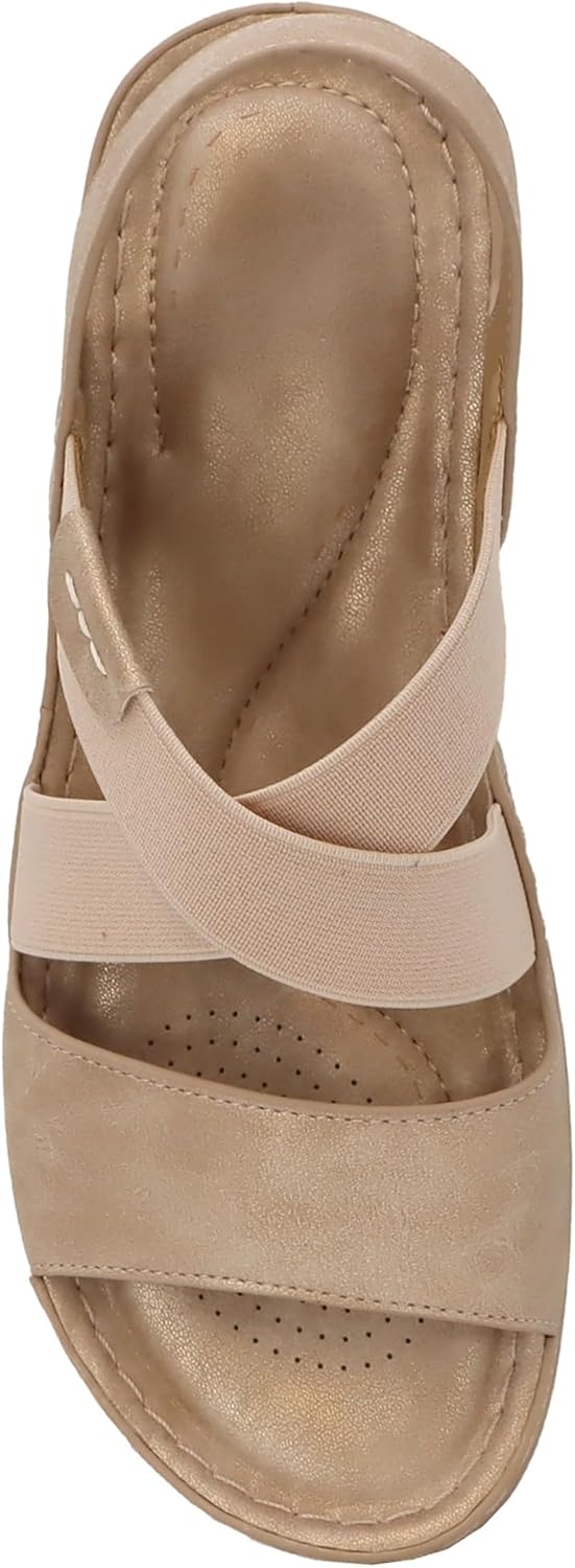 YOKI NOMI-02 Women’s Summer Criss Cross Wedge Slides – Elastic Strap Comfort Sandals, Slip On Wedge Sandals for Women