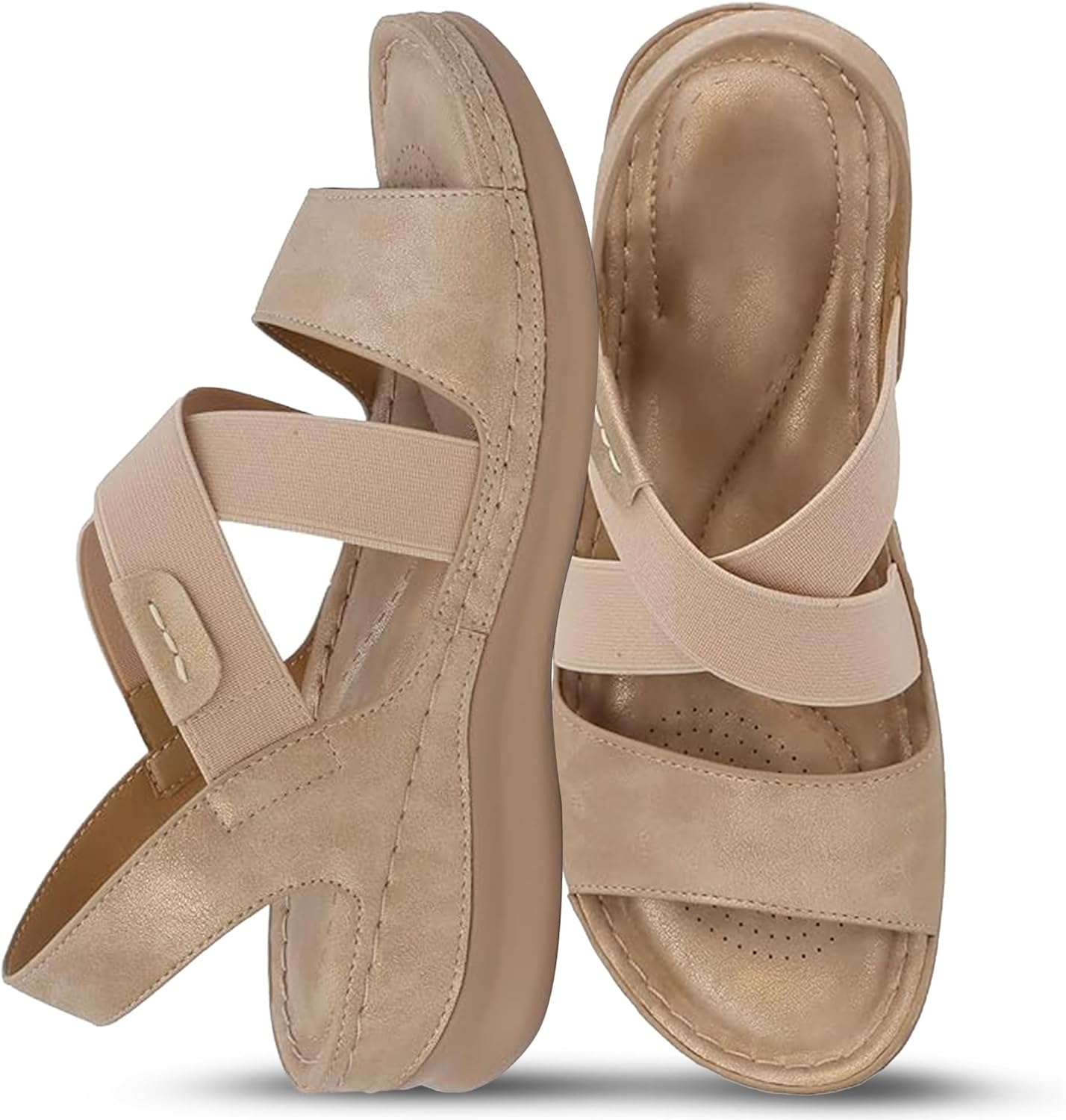Step into warm-weather style with the YOKI NOMI-02 Women’s Summer Criss Cross Wedge Slides, designed to offer everyday ease with a refined look. The elastic criss-cross straps secure your feet with comfort and flair, while the open toe allows breathability during sunny days. Whether you're heading to brunch, strolling through the park, or relaxing on vacation, these flatform sandals for women provide a balance of fashion and function. The gentle wedge and cushioned sole offer subtle lift and support for long wear, making them an excellent alternative to heels or flats. Crafted with a faux leather finish and flexible materials, these sandals women casual are perfect for styling with summer dresses, cropped jeans, or lightweight trousers. A durable rubber outsole ensures steady traction on different surfaces, while the backstrap design keeps your foot in place without compromising comfort. Ideal for weekend errands or a casual day out, these womens wedges sandals bring versatility to your wardrobe. The minimalist construction and neutral tones make them easy to pair with your go-to outfits, and their lightweight build makes them an effortless choice for packing on trips. Loved for their simplicity and style, these open toe sandals for women are a great option for anyone seeking chic yet practical footwear. From laid-back gatherings to everyday wear, the NOMI-02 elevates your look without overcomplicating your step. Choose these comfort sandals for women when you want all-day wearability wrapped in clean design and trend-forward details.