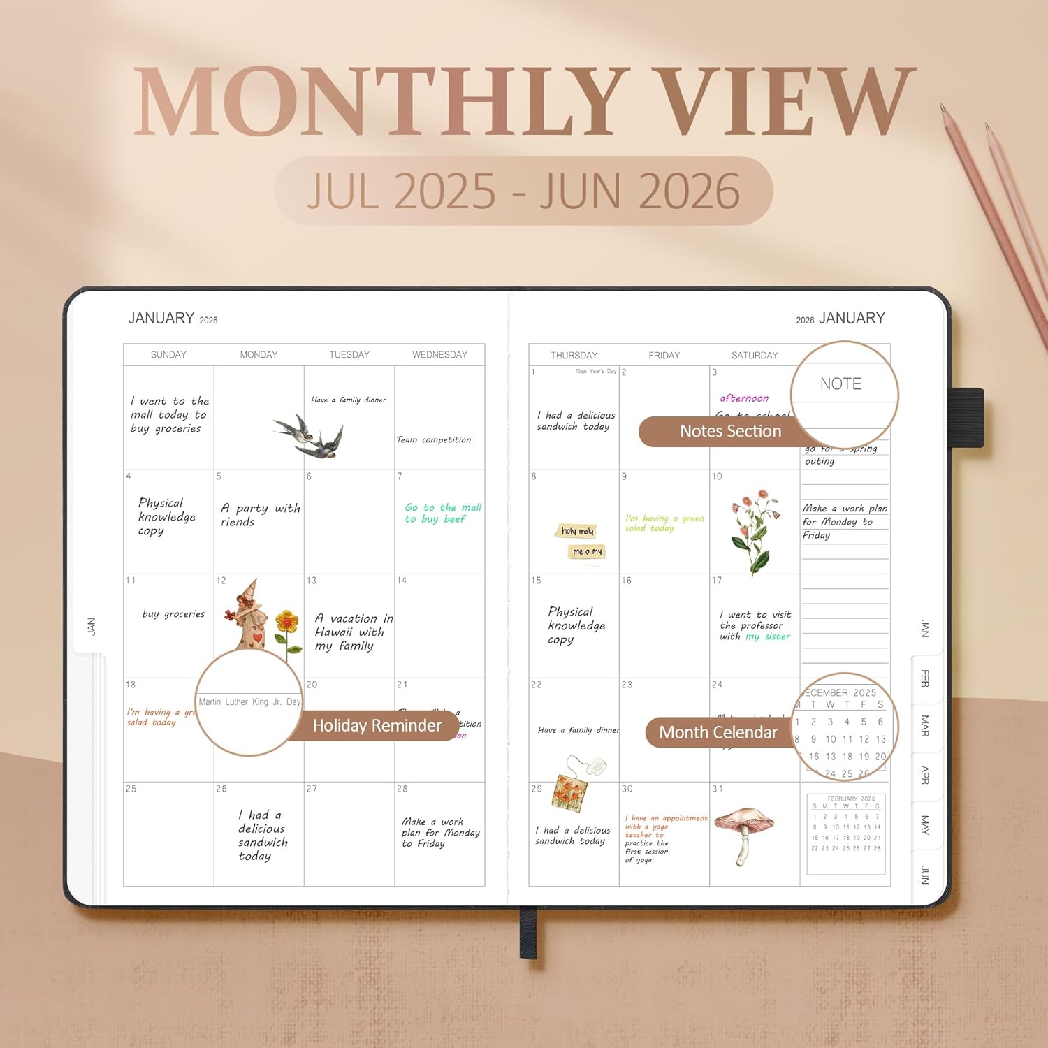 2025-2026 planner: Simplify your schedule with the 2025-2026 A5 Weekly & Monthly Planner! Featuring 12 months (Jul 2025-Jun 2026) of clean, intuitive layouts, it’s ideal for task management, goal tracking, and time optimization. Students will love the assignment sections, while professionals can streamline projects and meetings. The elegant design, spacious pages, and lay-flat binding make it a joy to use daily. Stay organized, reduce stress, and make every month count!