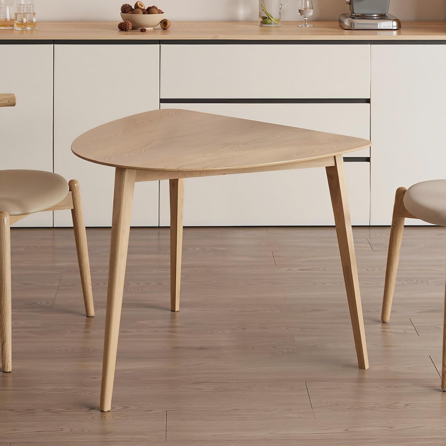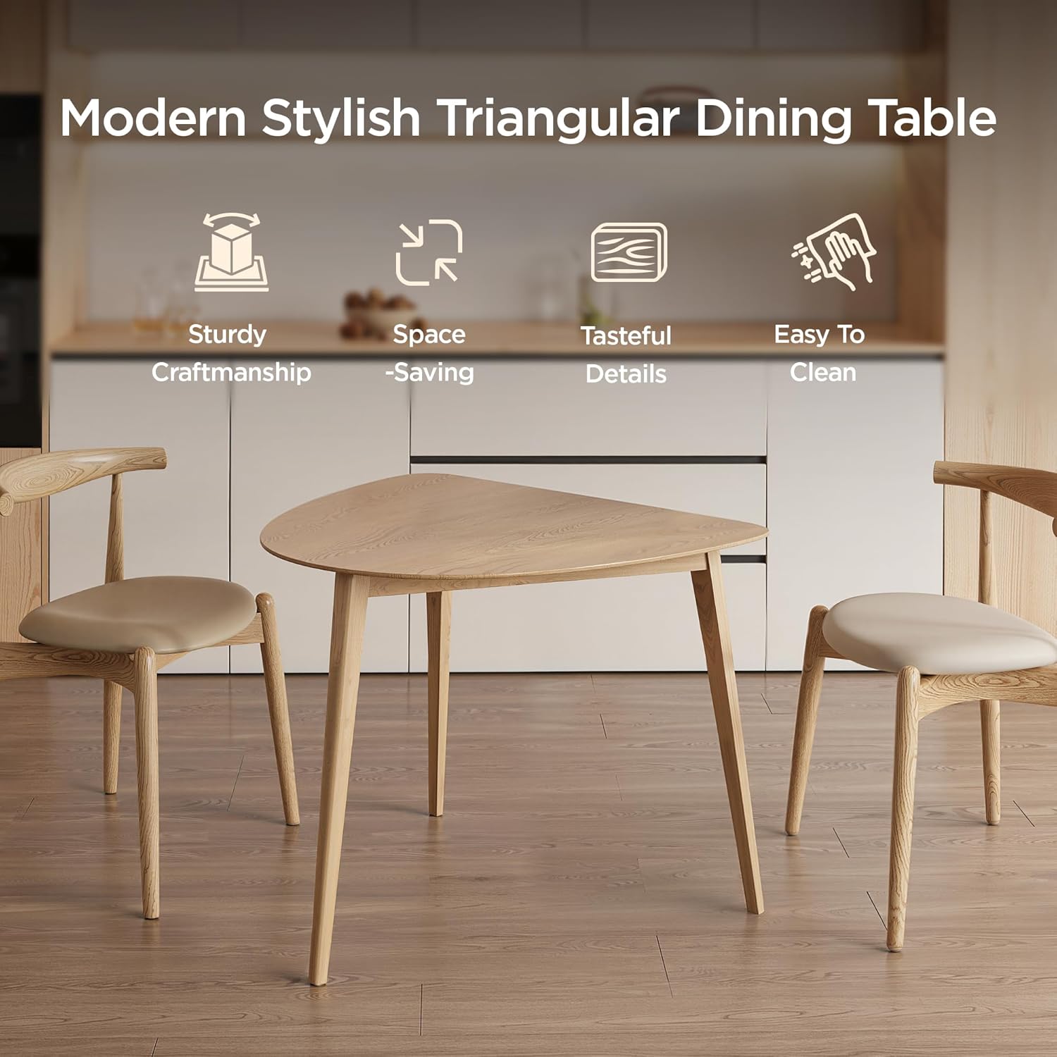 Bring modern sophistication to your living space with this triangle dining table. This versatile piece combines mid-century modern design with practical functionality, featuring clean lines and an organic triangular shape. The natural oak finish highlights the beautiful wood grain, making the rustic dining table a perfect centerpiece for your dining area, living room, or compact spaces.