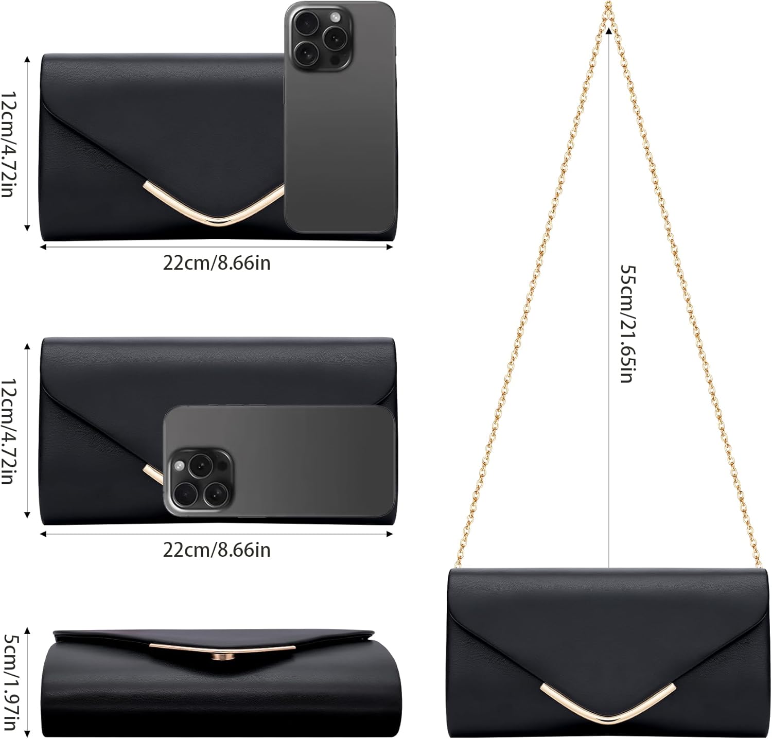 Larcenciel Clutch Purse for Women, Trendy Vegan Leather Envelope Evening Bags w/Chain, Wedding Cocktail Party Formal Handbags