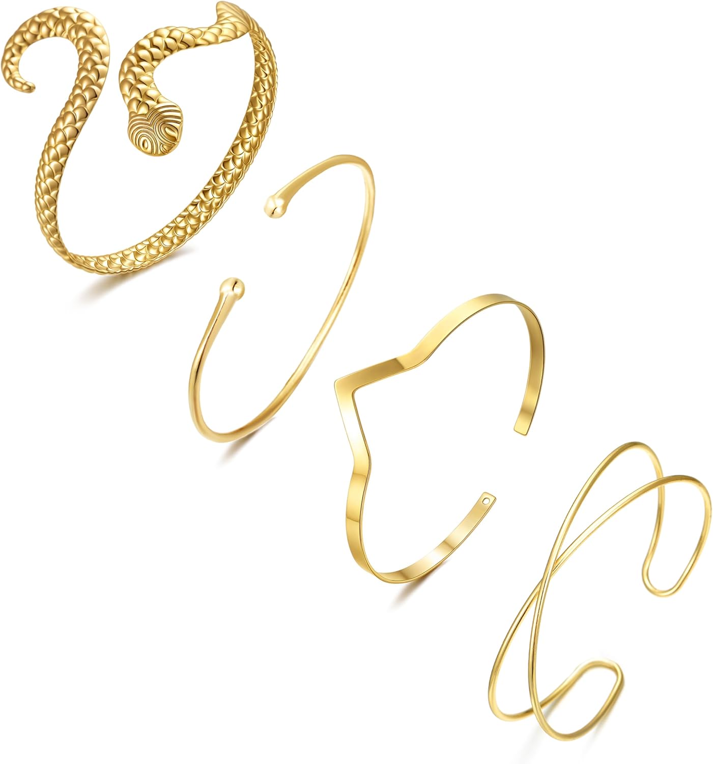 BOMAIL 4 Pieces Gold Arm Cuff for Women Minimalist Upper Arm Bangle Bracelet Adjustable Boho Coil Armlet Armband Cuff Bracelets Set