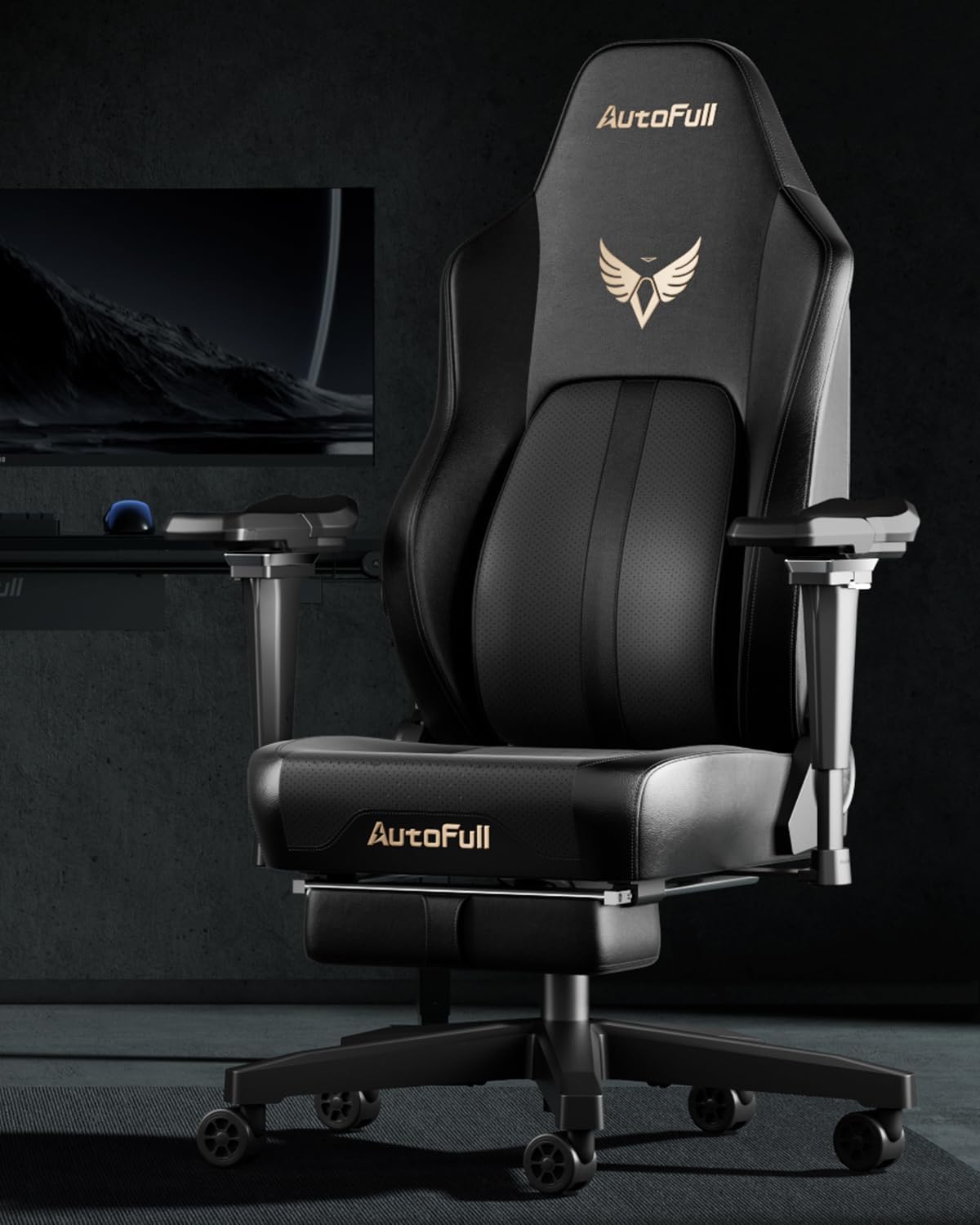 AutoFull M6 Gaming Chair, Ergonomic Office Chair with Dynamic Lumbar Support, 6D Adjustable Armrests and Footrest (Black)