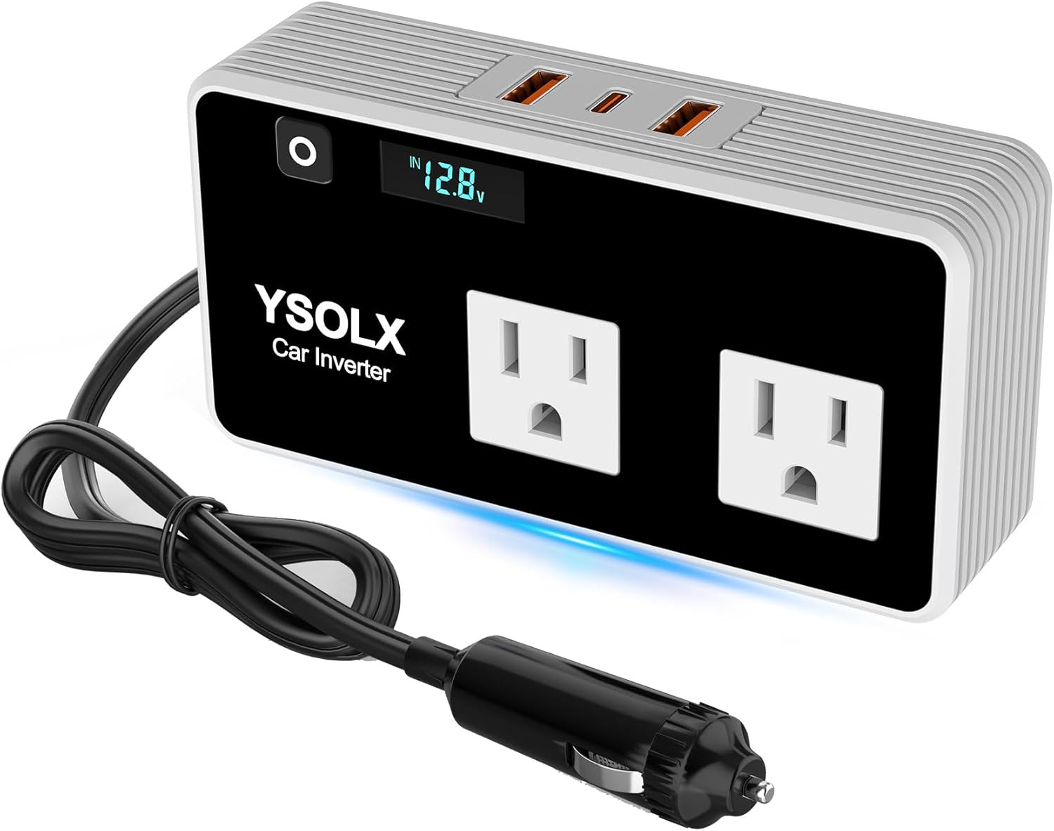 300W Car Power Inverters for Vehicles, YSOLX Car Inverter 12V to 110V with 3 USB Fast Charger and Car Plug Adapter Outlet for Laptop Computer Charger