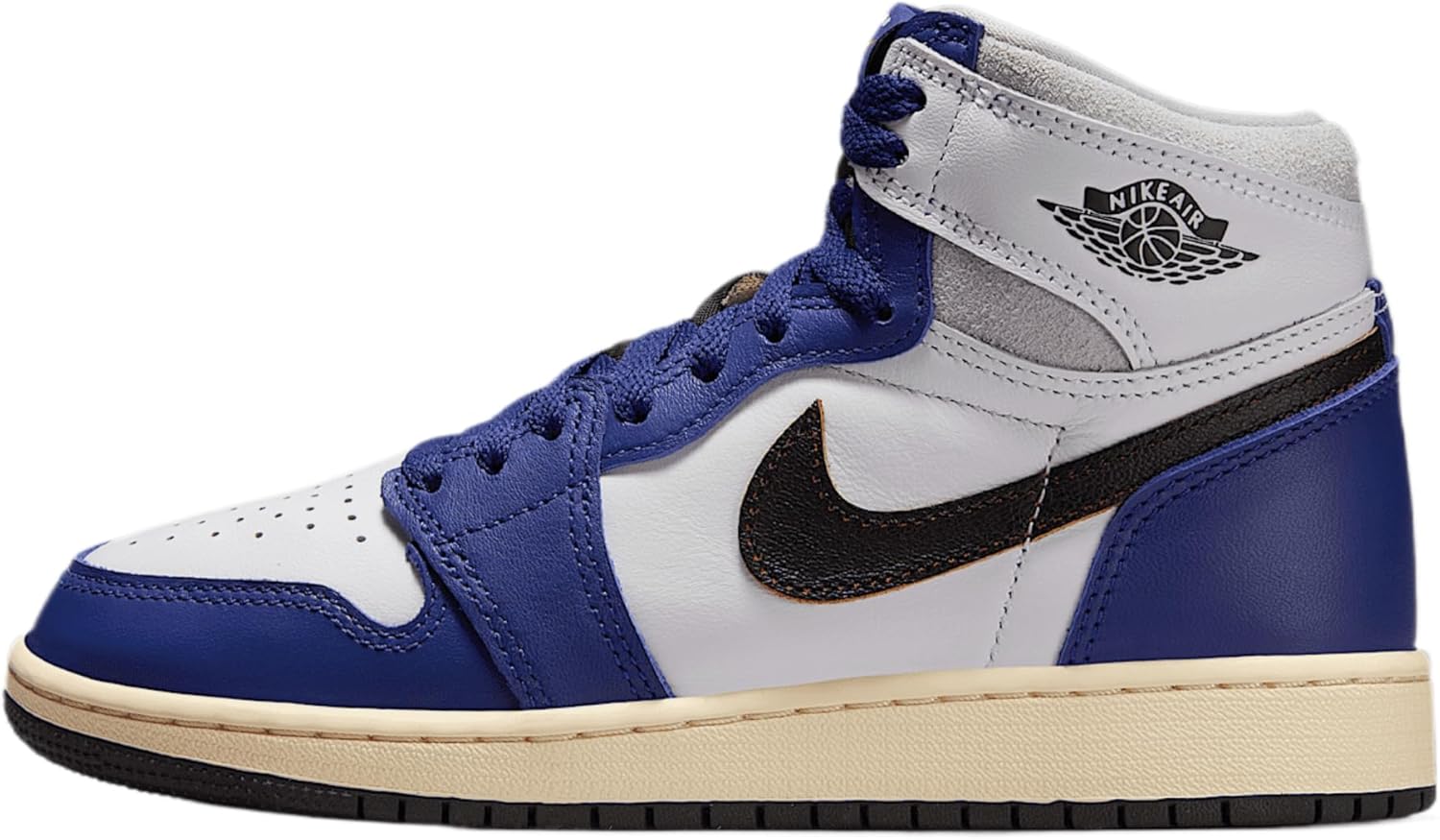 Air Jordan 1 High OG Big Kids' Shoes (FD1437-100, White/Neutral Grey/Deep Royal Blue/Black)