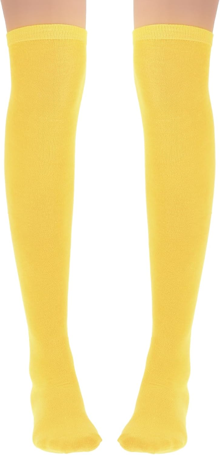 1 Pair Thigh High Leg Warmers, Yellow Thigh High Socks for Women Over the Keen Socks- Soft Cotton Yellow Leg Warmers Long Stockings, Standard Size
