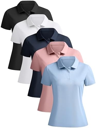 5 Pack Women's Polo Shirts Short Sleeve 3 Buttons Collared Uniform Tops Moisture-Wicking T-Shirts for Work & Casual