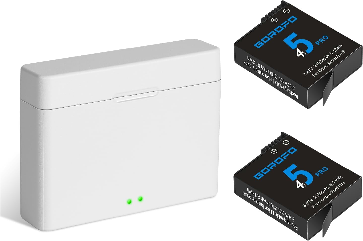 for Osmo Action 5 Pro/4/3 Charger Kit 2-Pack 2100mAh Action 5 Pro Batteries and 2-Channel Fast Charger Hub Compatible with DJI Osmo Action 5 Pro, Osmo Action 4 and Osmo Action