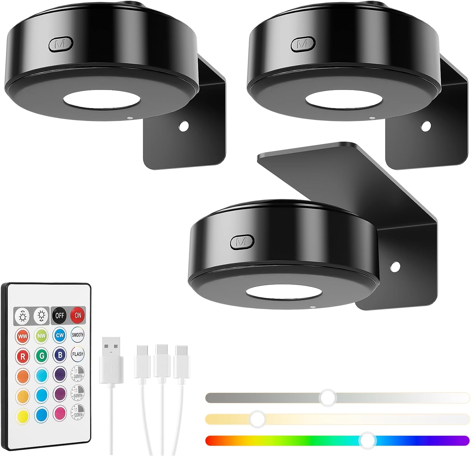 3PCS Picture Lights, Rechargeable Battery Magnetic Poster Lights with 3 Color Temps&12 RGB, Dimmable and Timer Metal Art Light for Display, Wall, Artwork, Gallery (Black)