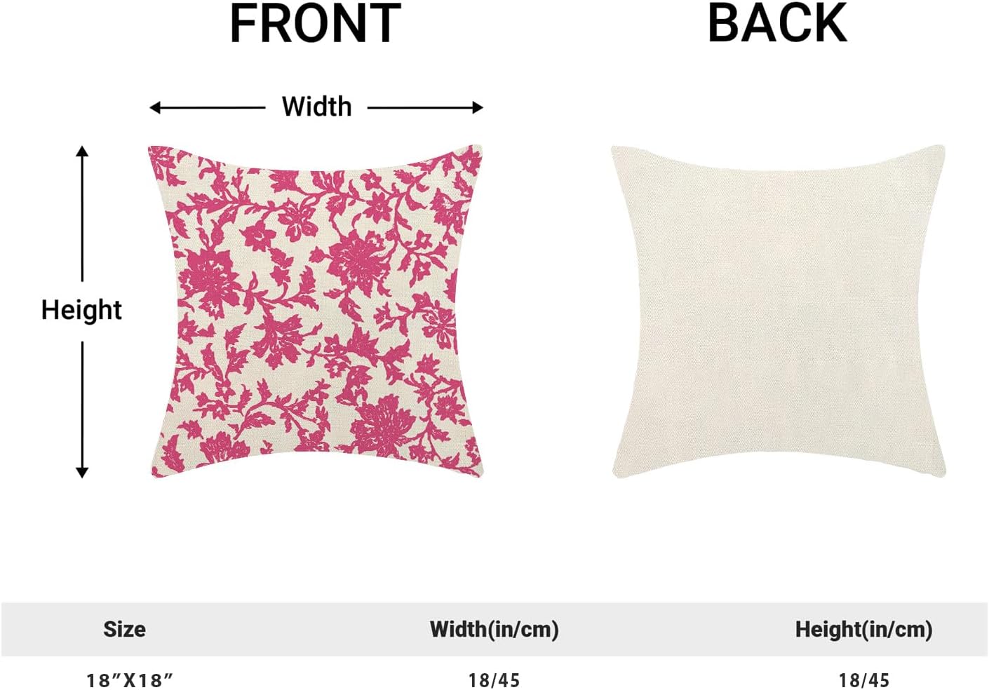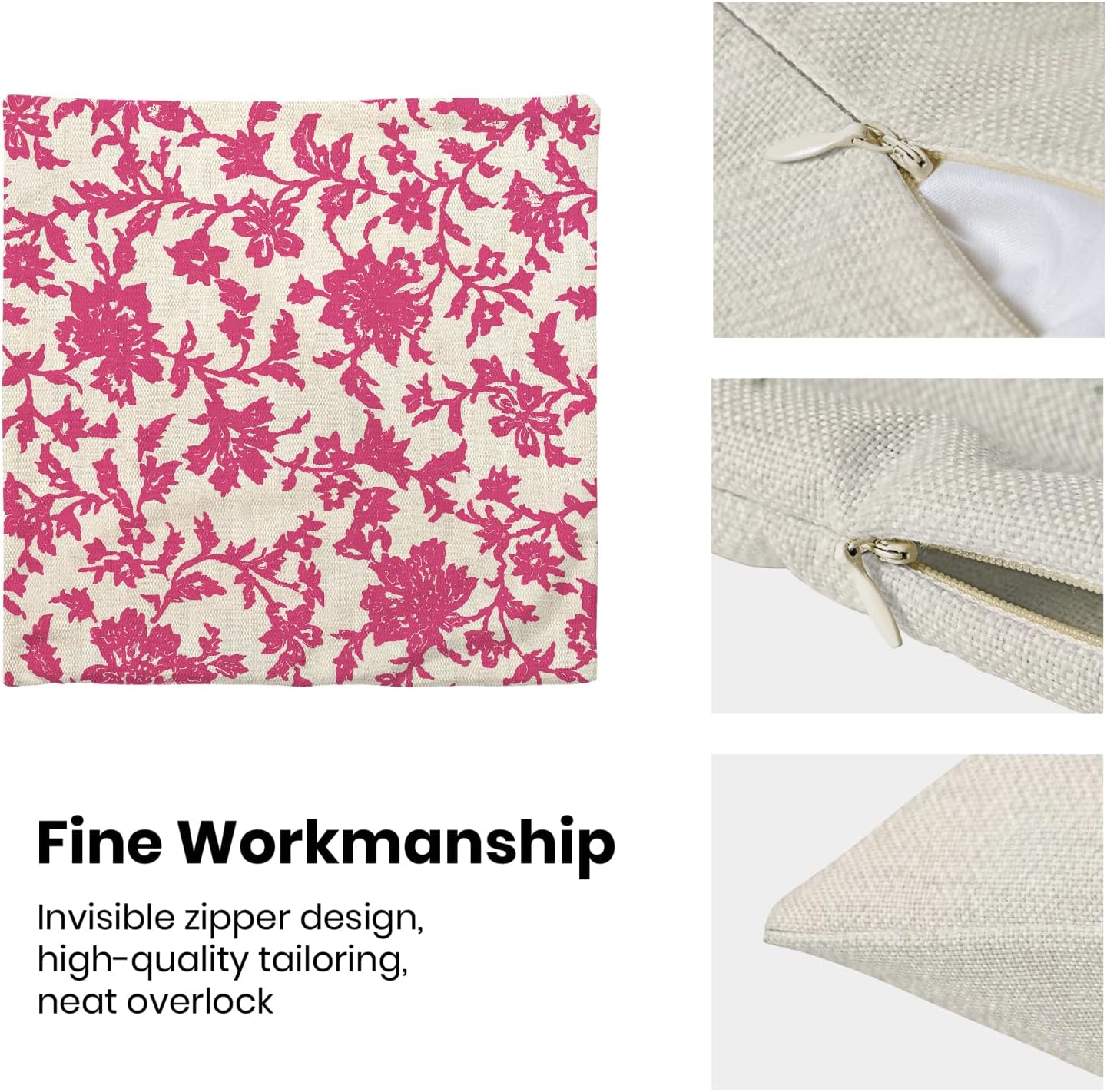 Great Decorations This is a comprehensive pillow covers online store,we always provide you various throw pillow covers and different styles pillow covers,and our flower pillow covers are made of high-quality linen blend materials,which are very suitable to change your home or other places quickly.The block print pillow covers have elegant colors,hot pink flower,pleasing colors,you will like it.The floral throw pillow covers can fit in living-room,bedroom,sofa,couch or outdoor etc.You can find a satisfied spring pillow covers in our store,looking forward to your arrival. About Us 1.【Package】: Set of 2 boho pillow covers 18x18,not include insert or filler. 2.【Size】: 18x18 inches (45 cm x 45 cm) 3.【Material】: The hot pink pillow covers are made of highty quality linen,and the floral pillow covers are elegant home decoration. 4.【Closure】: The home decoration block print flower pillow covers is a kind of seamless design with hidden zipper,and which has elegant appearance.It is not difficult to clean and put on. 5.【Washing tips】: Hand wash or machine wash,do not hot water,and do not bleach. 6.【Warm tips】: Please think it over before you did,there is pillow cover only(no pillow insert).Due to taken in light,the product picture is different with actual product,thank you for your understanding. 7.【After-sales service】: My dear customer,if you have any product problem,please contact us immediately,we will provide you best after-sales service.Your satisfaction is our best pleasure.