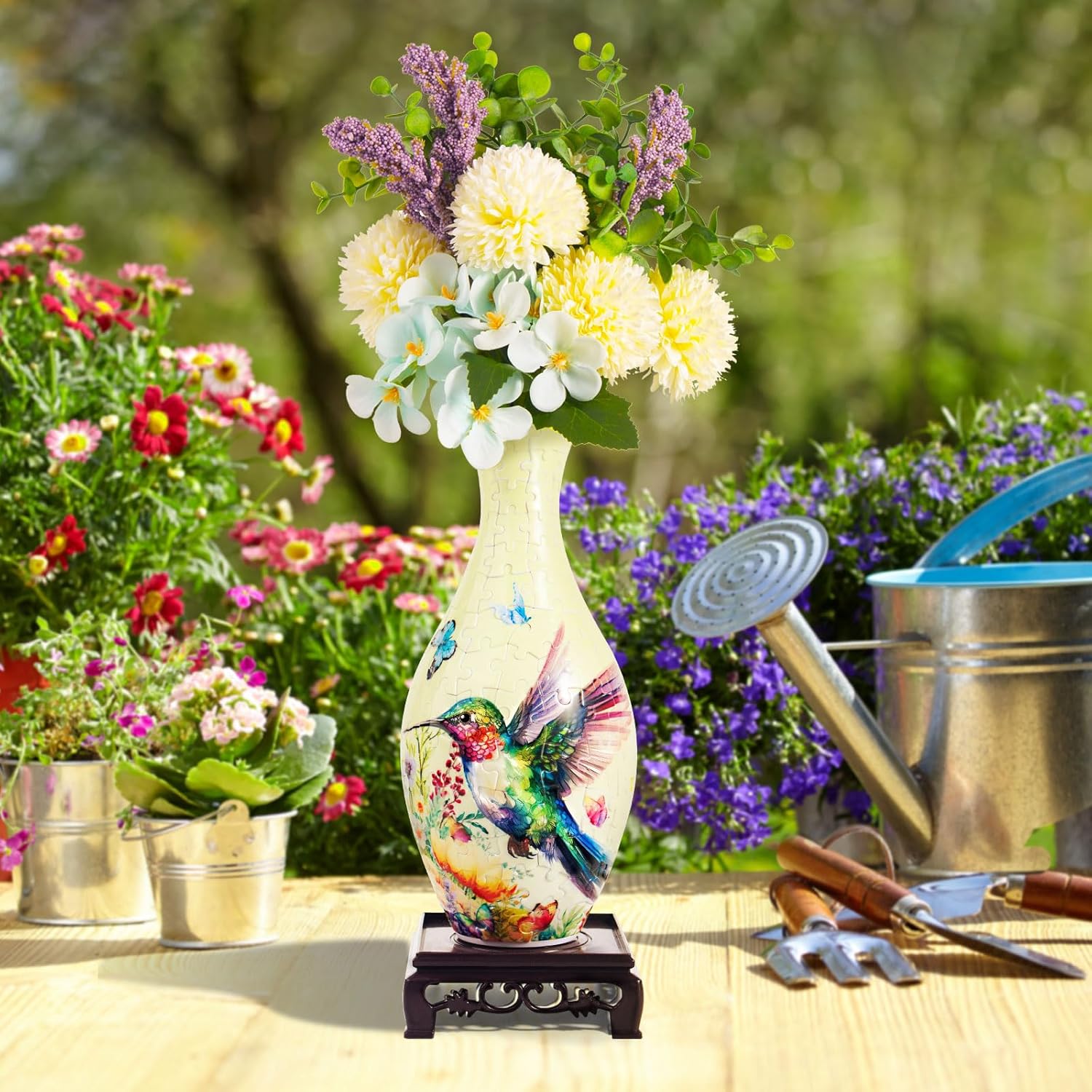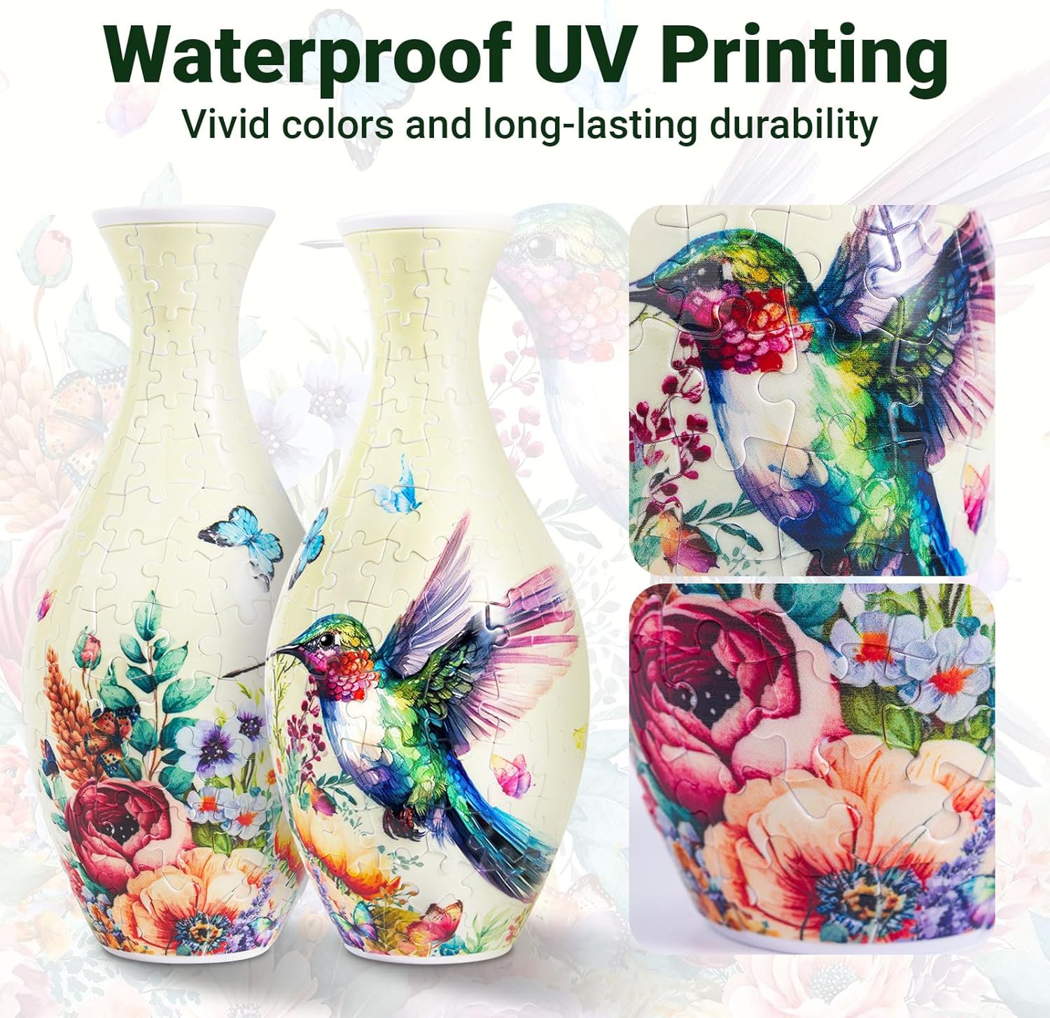 Unique Puzzle Vase Design: This 3D puzzle uses a special splicing process that can be locked without adhesive. At the same time, the UV printing process makes it durable and waterproof. You can fill the water cup with the right amount of water, insert and display your favorite fresh flowers!