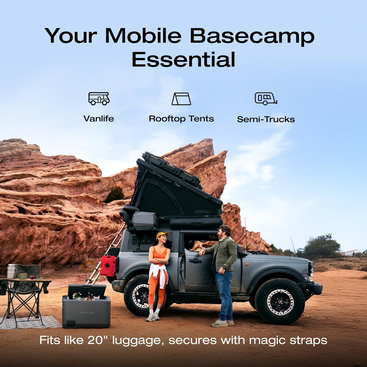 All-Terrain Compatibility: Compact 20" luggage size with ergonomic handle fits effortlessly in SUVs/overlanders/semitrucks. Magic strap kit secures on rooftops/truck beds. Cools 120-180 sq ft spaces, creating microclimate for desert adventures or alpine camping.