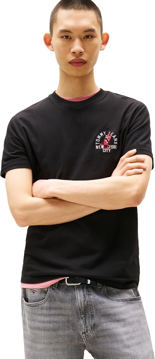 Tommy Jeans Men's Short Sleeve Cotton Graphic T-Shirts with Embroidered Chest Logo