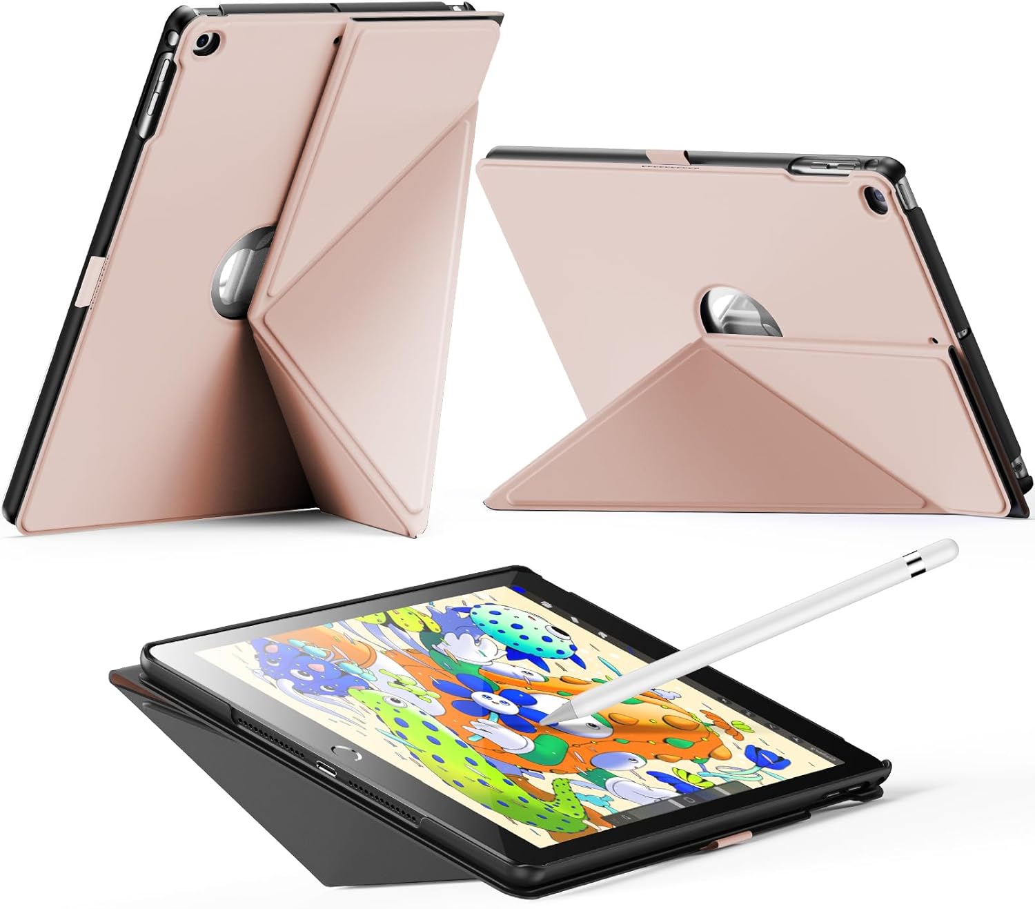 INFILAND Case for iPad 6th / 5th Generation (2018/2017) iPad 9.7 Inch case, iPad Air 2 / Air 1 – Magnetic Origami Slim Cover with Pencil Holder, Multi-Angle Stand, Auto Wake/Sleep –Rose Gold