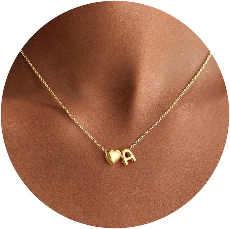 M MOOHAM Dainty Heart Initial Necklaces for Women Girls Gifts - 14K Gold Plated Tiny Heart Initial Necklace Jewelry Personalized Birthday Gifts for Women Teen Girls Trendy