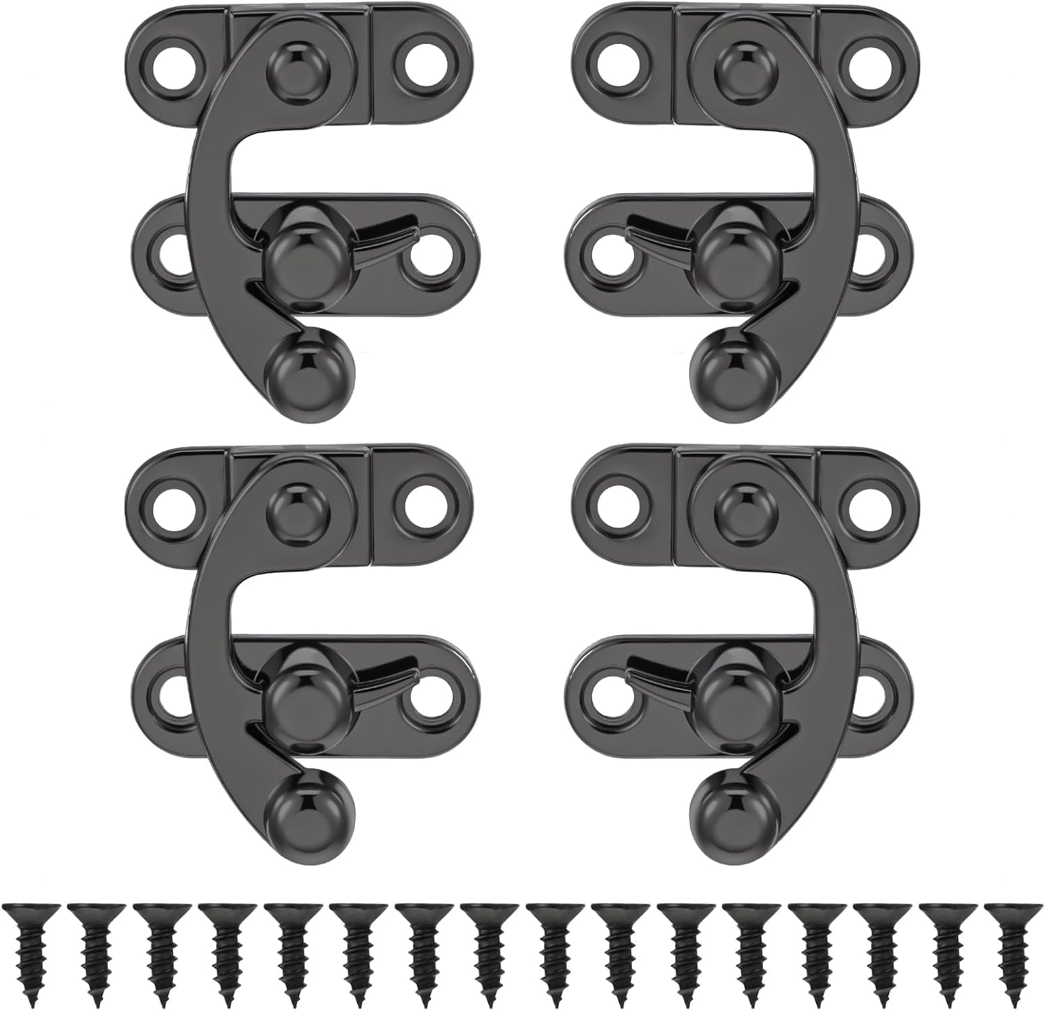 4 Pack Small Latch Set, Black Box Latch with Small Latch Hook, Swing Latch, Jewelry Box Latch, Mini Latch, Chest Latch, Zinc Alloy Latches Hardware for Box Latches Hardware