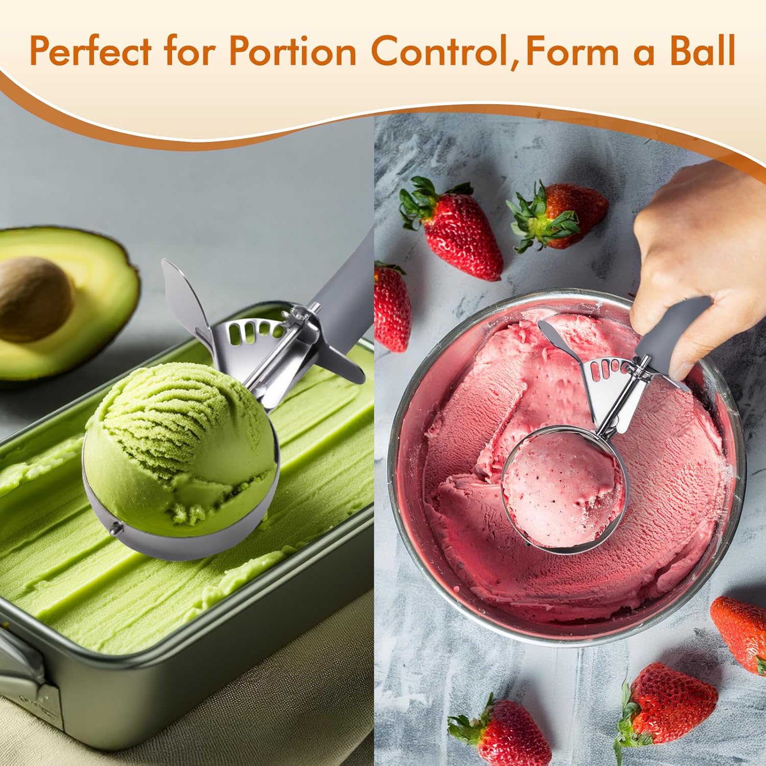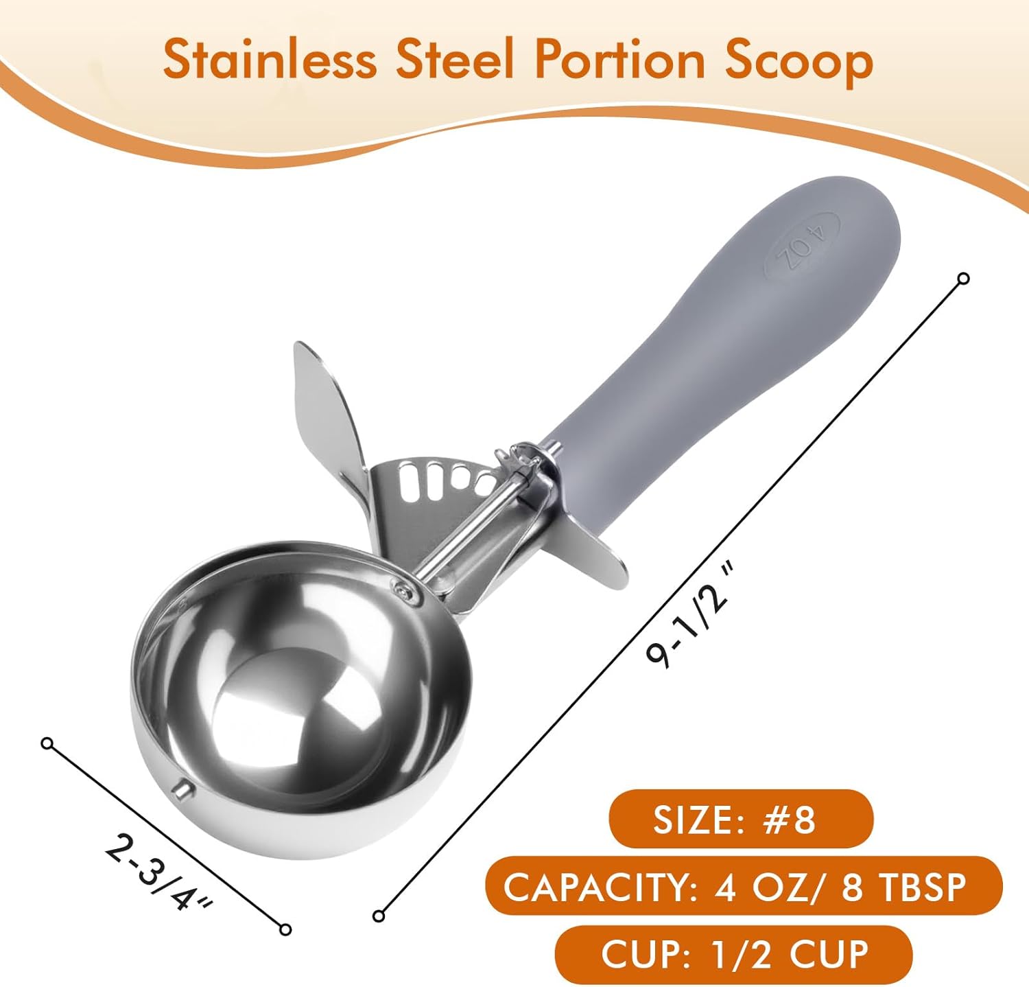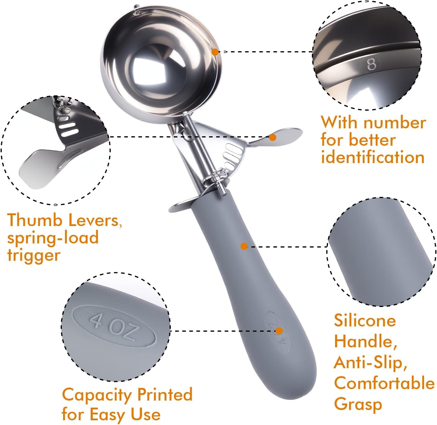 4 OZ Scoop, #8 Disher, Large Ice Cream Scoop with Trigger, Muffin Scoop, Large Cookie Scoops for Baking, Grey Handle, With Trigger for Portion Control