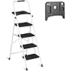 Smartxchoices 4 Step Ladder with Tool Tray, Folding Step Stool with Wide Anti-Slip Pedal and Handgrip, Heavy Duty Steel Step Ladder for Home Kitchen Office Shop, 330 lbs Load Capacity, White