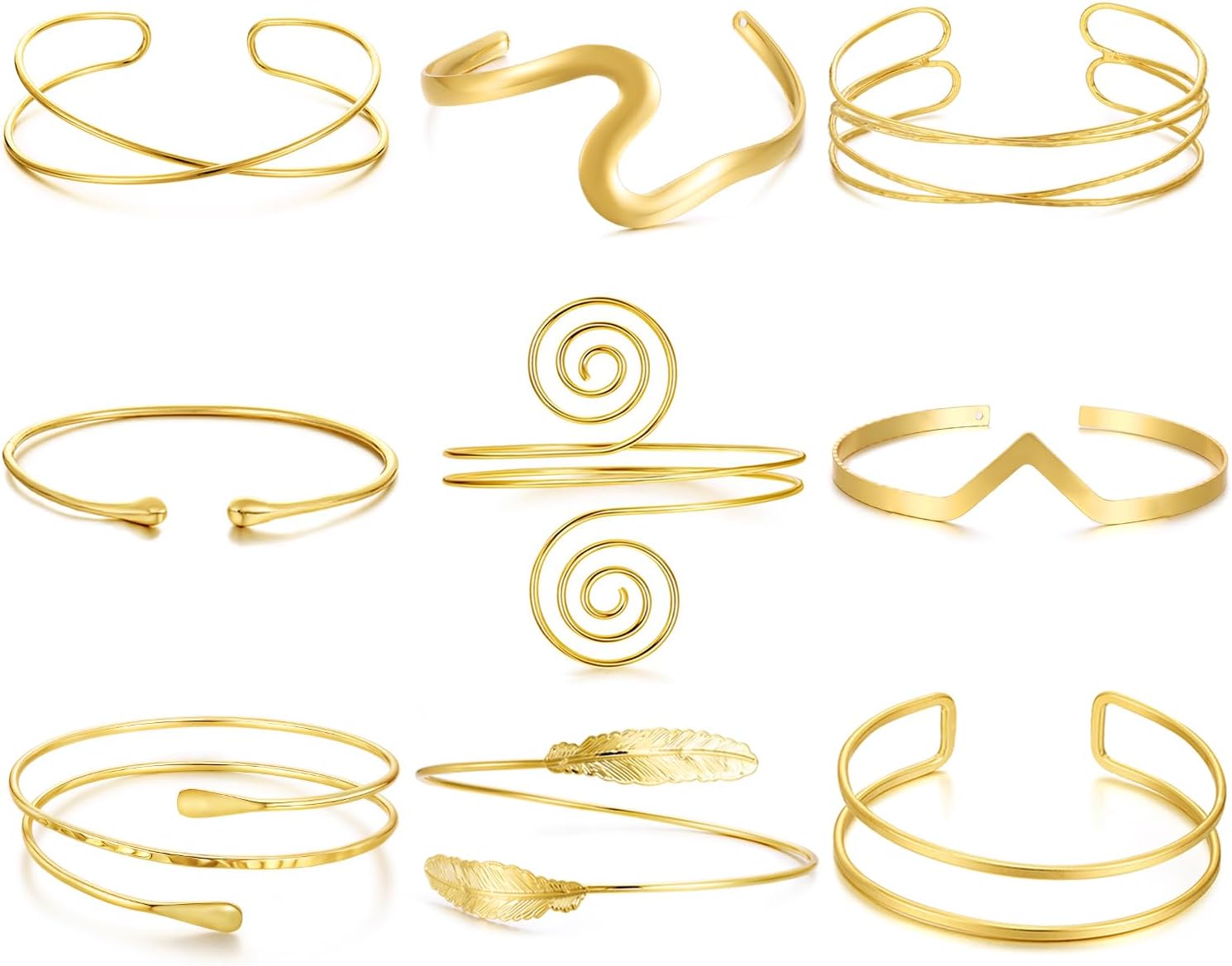 BROCC 9PCS Gold Arm Cuff Bangle Bracelets for Women Bangle Armband Coil Swirl Upper Armlet Arm Cuff Bracelets Simple Adjustable Armband Jewelry Set