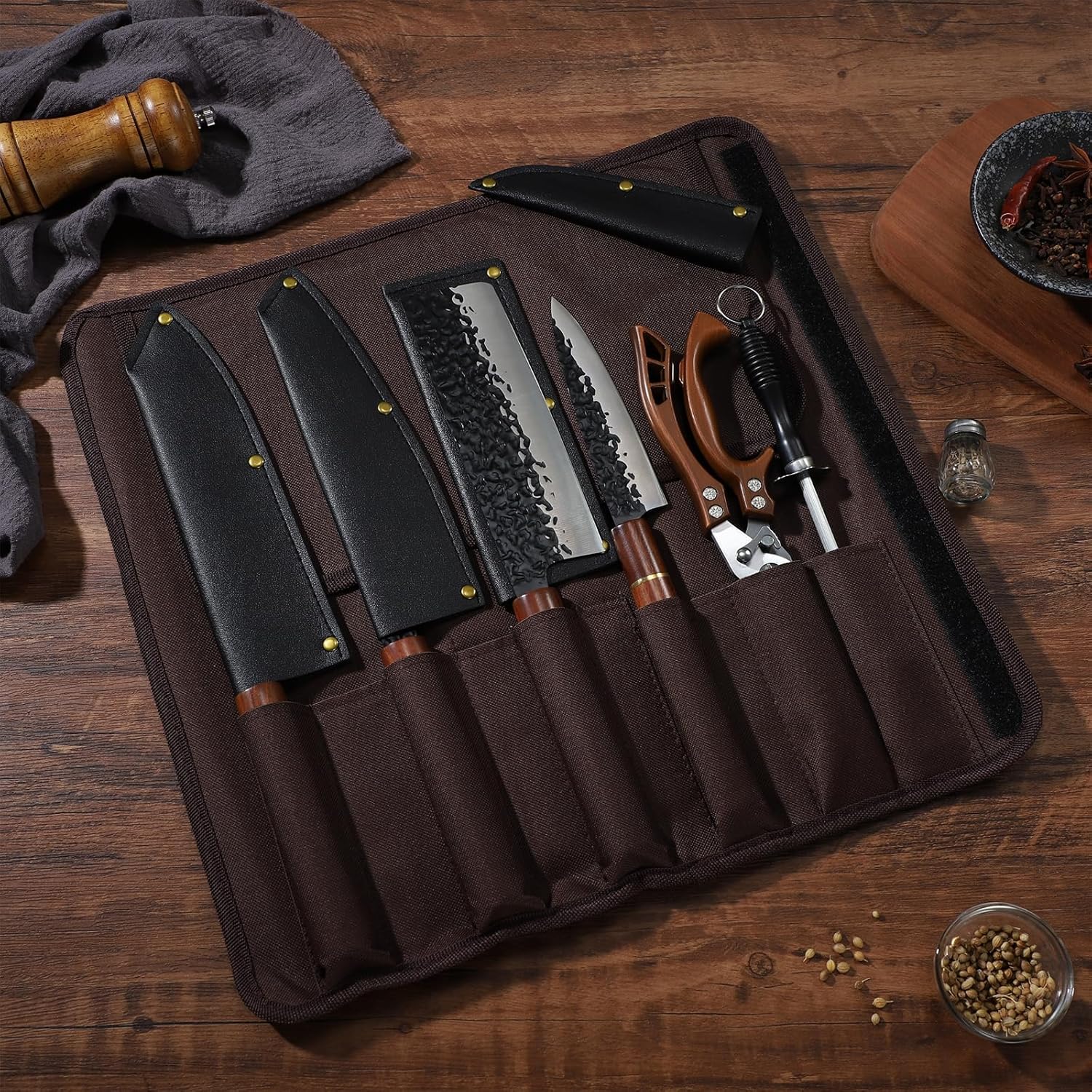 Complete Portable Solution: All tools store neatly in the included compact roll case with individual synthetic leather sheaths protecting blades during transport. Perfect for kitchen organization or taking culinary skills outdoors to picnics and camping trips