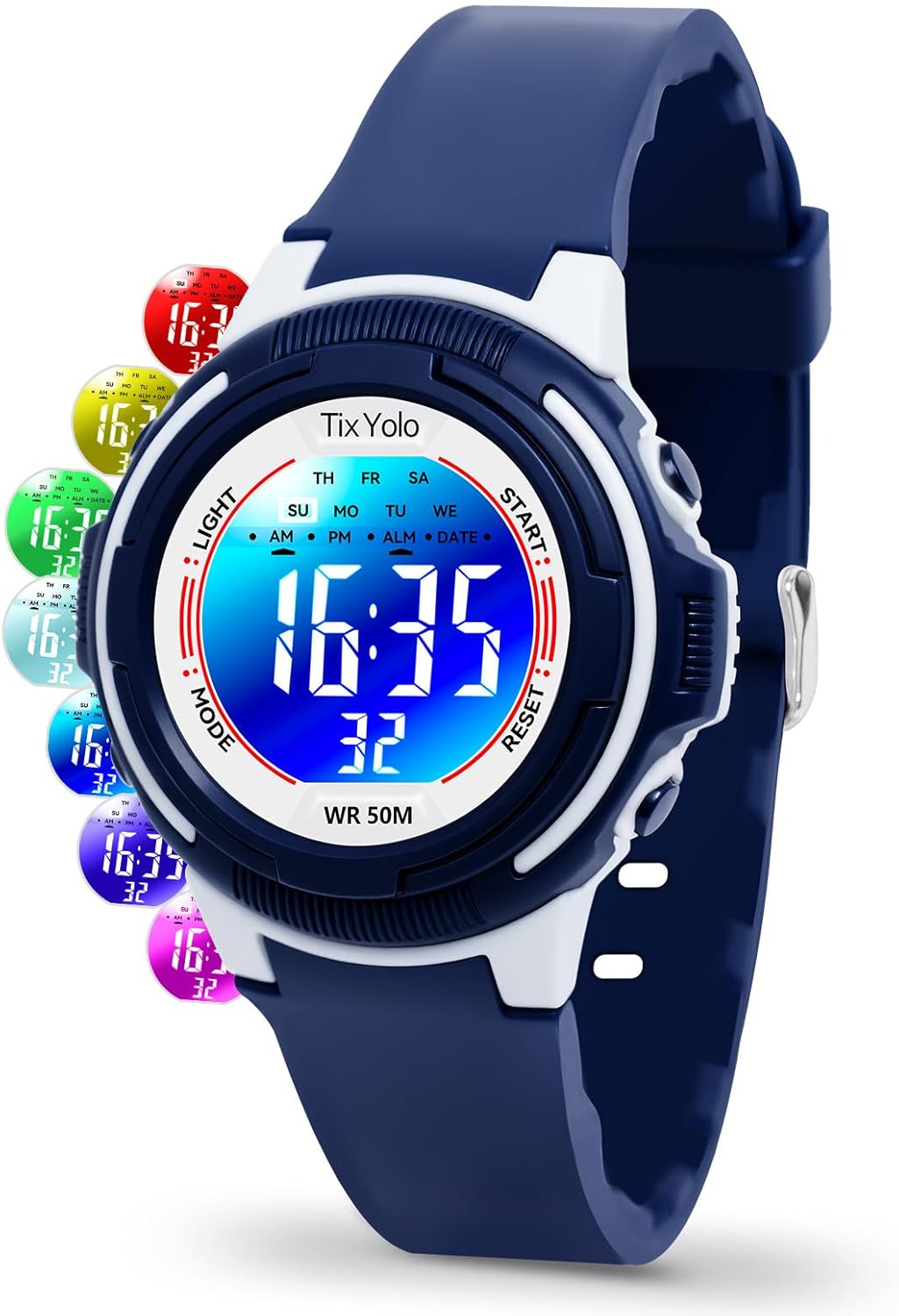 Digital Kids Watch with 7 Color Lights 50M Waterproof,Alarm,Stopwatch,Soft Strap,Children Gifts Sports Watch for Boys Girls 5-12 Years