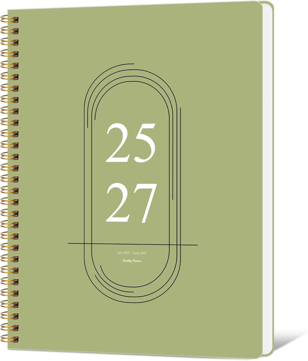 Stylish Design: Our 2025-2027 Monthly Planner features a sleek and elegant green cover with "25-27" prominently displayed in the center, making it a fashionable addition to your workspace.