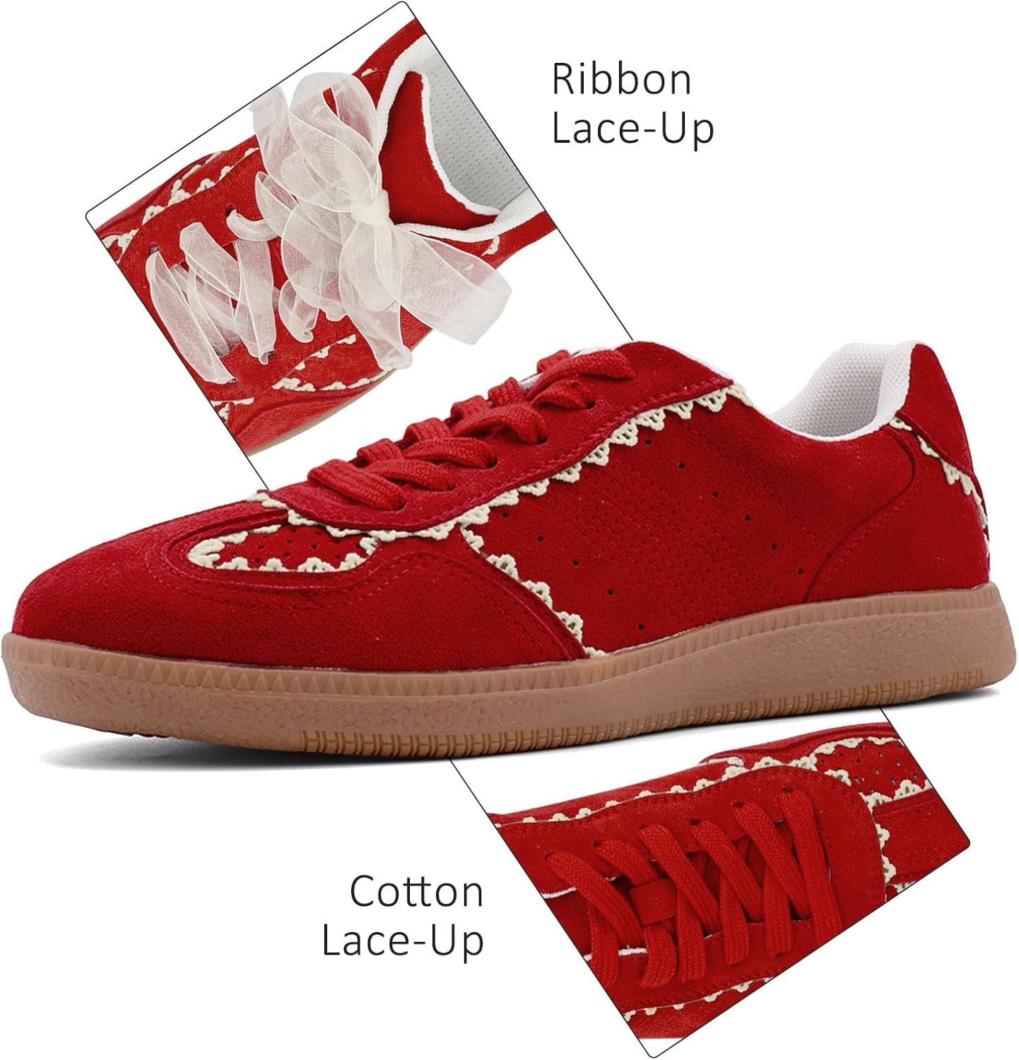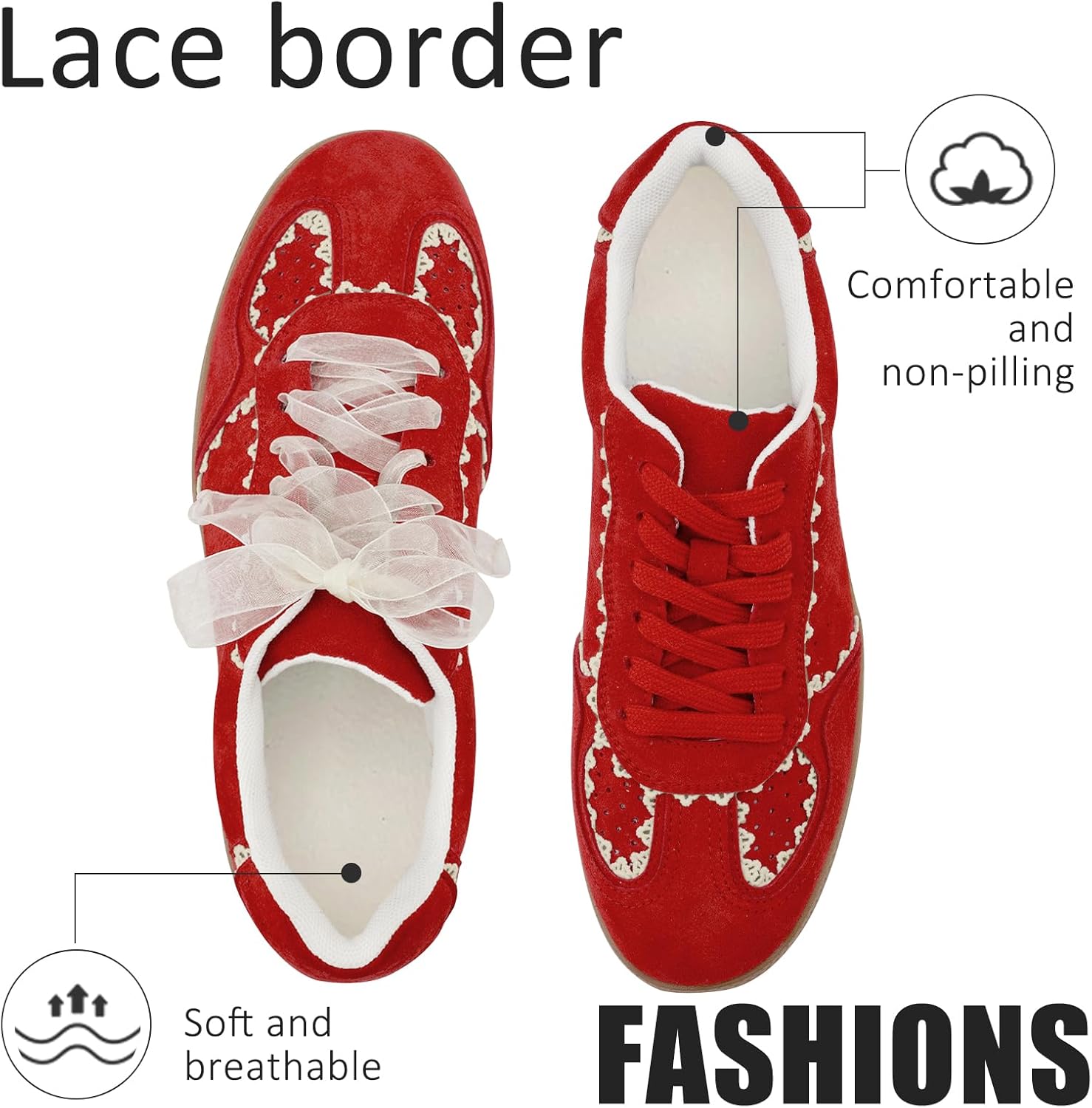 UBWDU Lace Fashion Ballet Sneakers for Women 2025 – Trendy Cute Crochet Ribbon Lace-Up Casual Spring Shoes
