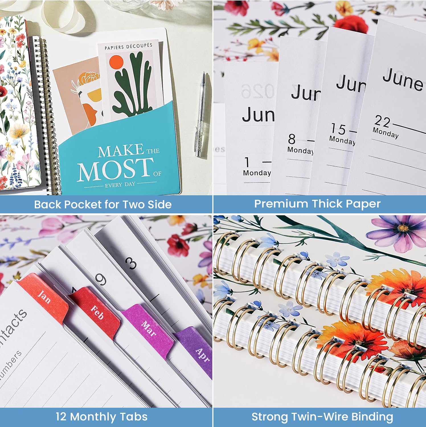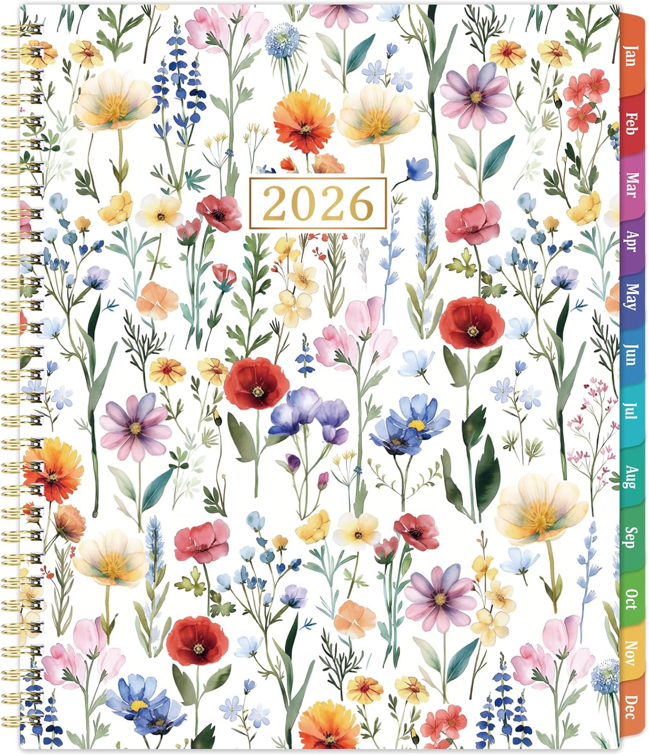 2026 Planner Featured - 8.5" x 11" Monthly and Weekly Pages | White Paper | Spiral Bound | Cardboard Cover (not Hardcover) | 12 Colorful Monthly Tabs | Back Pocket | Quick Reference Information | 2026-2027 Yearly Overview | 2026-2028 Holidays |