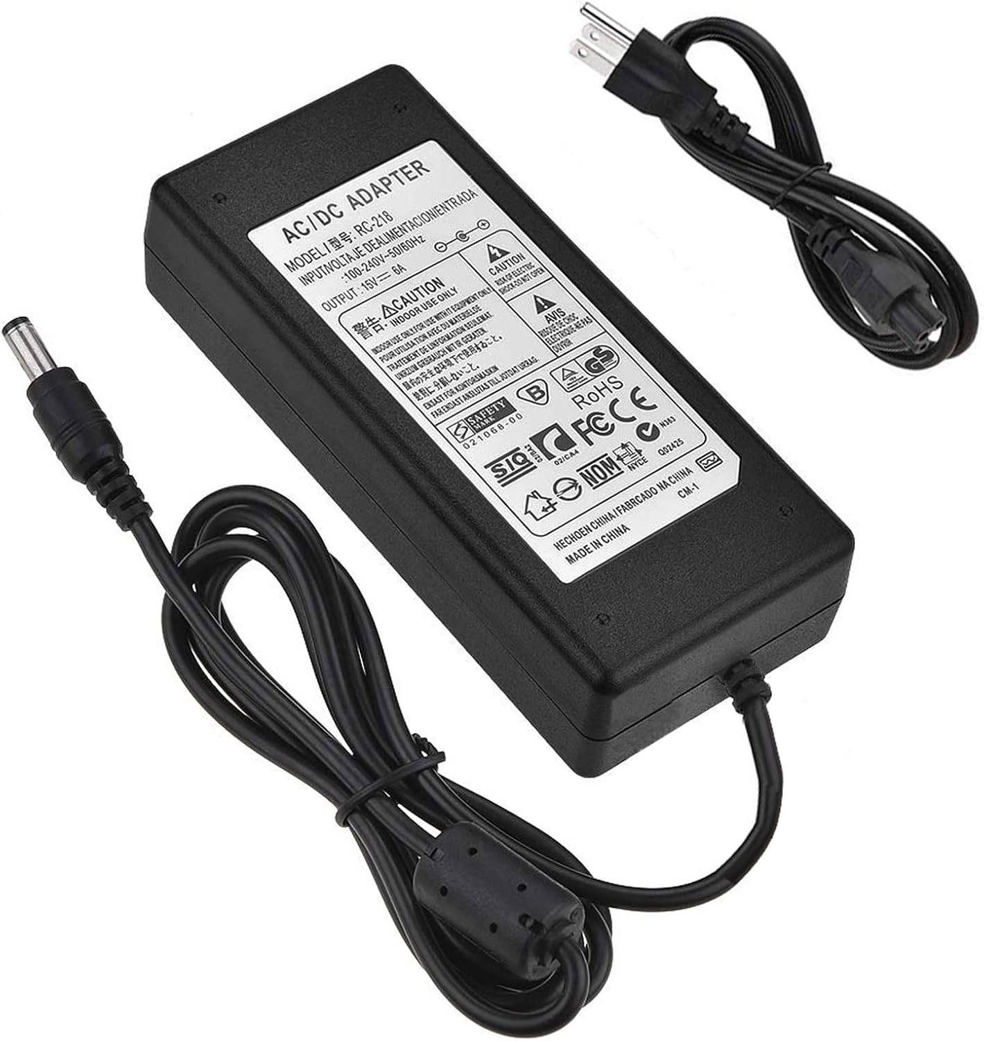 15V 6A Power Adapter, AC 100-240V Switching to DC 15V 90W 6A, LED Power Supply, for RC Charger, LED Strip Lights, Other Low Voltage Device