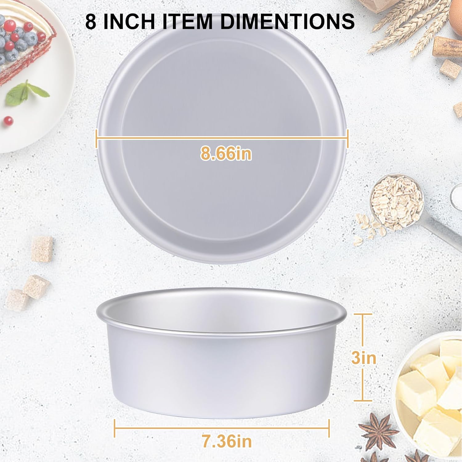 🎂【PREMIUM QUALITY & HEAT EVENLY】This round cake pan is made of high quality aluminum alloy which is sturdy and durable. Compared to stainless steel, aluminum alloy heats evenly and has no hot spots. Also, stainless steel may rust after long-term use, but aluminum cake pans will not have such problems. Ideal for baking various beautiful cakes / cream brulee for any occasion.
