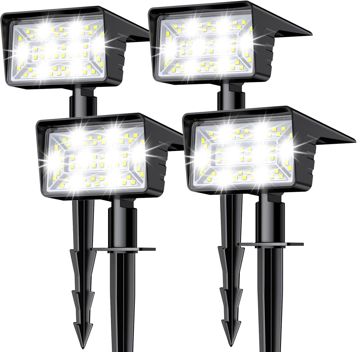 Solar Spot Lights Outdoor with 60 LED & Auto On/Off, 4 Pack Solar Lights Outdoor Waterproof IP68 with 3 Lighting Modes, 2-in-1 Solars Landscape Light for Outside, Garden, Yard(Cool White)